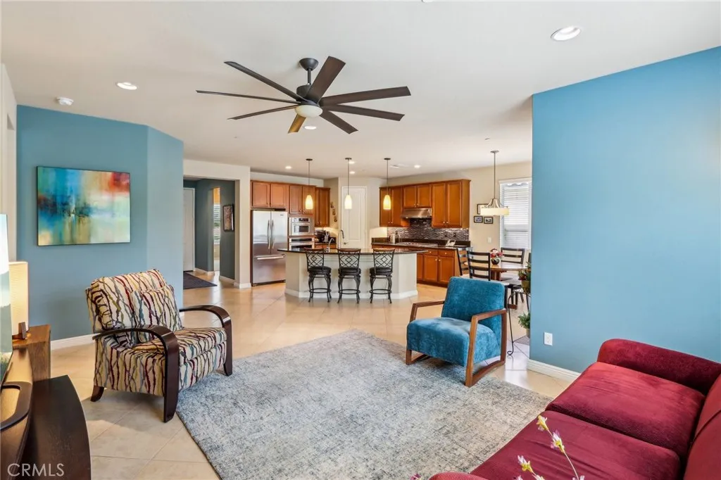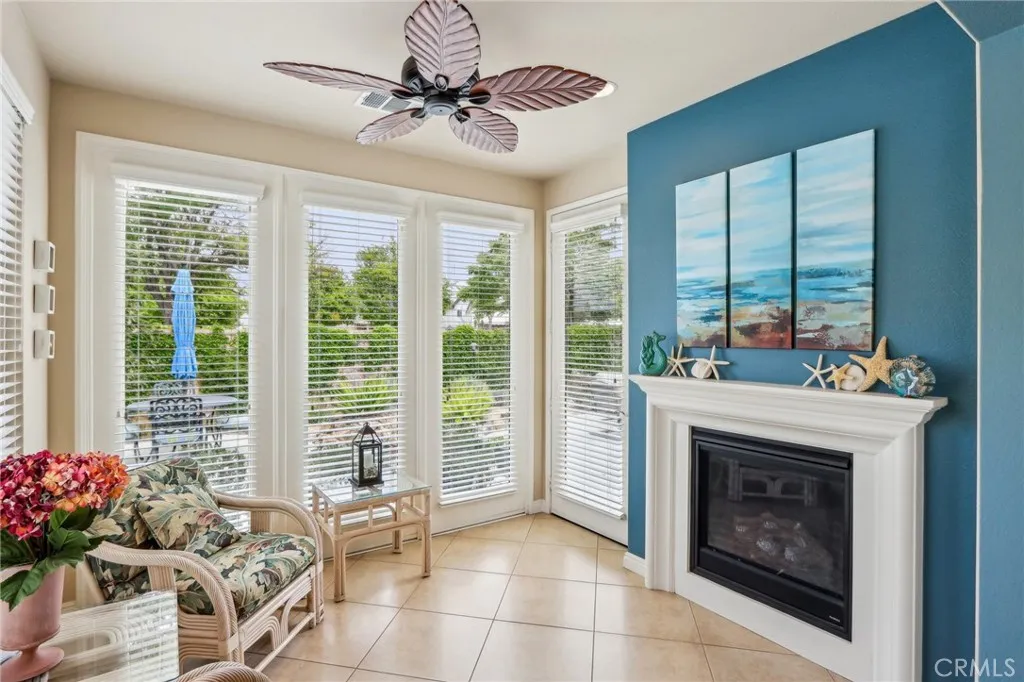 Welcome to resort-style living in the highly sought-after 55+ Solera Diamond Valley Community by Del Webb! This meticulously upgraded 2-bedroom, 2-bathroom home with a den/office offers 1,734 square feet of stylish and functional living space designed for comfort and elegance. From the moment you arrive, the exceptional curb appeal is evident with top-of-the-line drought-tolerant landscaping and a river rock bed creating a stunning, low-maintenance front yard. The beauty continues in the backyard with equally impressive water-wise landscapingyour private outdoor oasis. Inside, youll be impressed by the tile flooring laid diagonally at a 45-degree angle, elevating the homes custom feel. The open-concept kitchen is a true showstopper, featuring an upgraded stainless steel appliance package, a built-in range, a walk-in pantry, designer tile backsplash, a huge center island, and sleek upgraded fixtures. Whether youre hosting or enjoying a quiet night in, the layout flows beautifully into the living and dining areas. A gorgeous sunroom adds extra living space and includes a cozy fireplace, perfect for year-round relaxation. The spacious primary suite serves as a serene retreat, complete with a generous walk-in closet, a luxurious bath, dual sinks, and a step-in shower. The guest bedroom and second full bath are perfect for visitors or multi-purpose use. Need a home office or hobby room? The dedicated den/office offers flexible space to meet your needs. A well-appointed laundry room with extra storage keeps everything organized, and the garage includes built-in cabinets for even