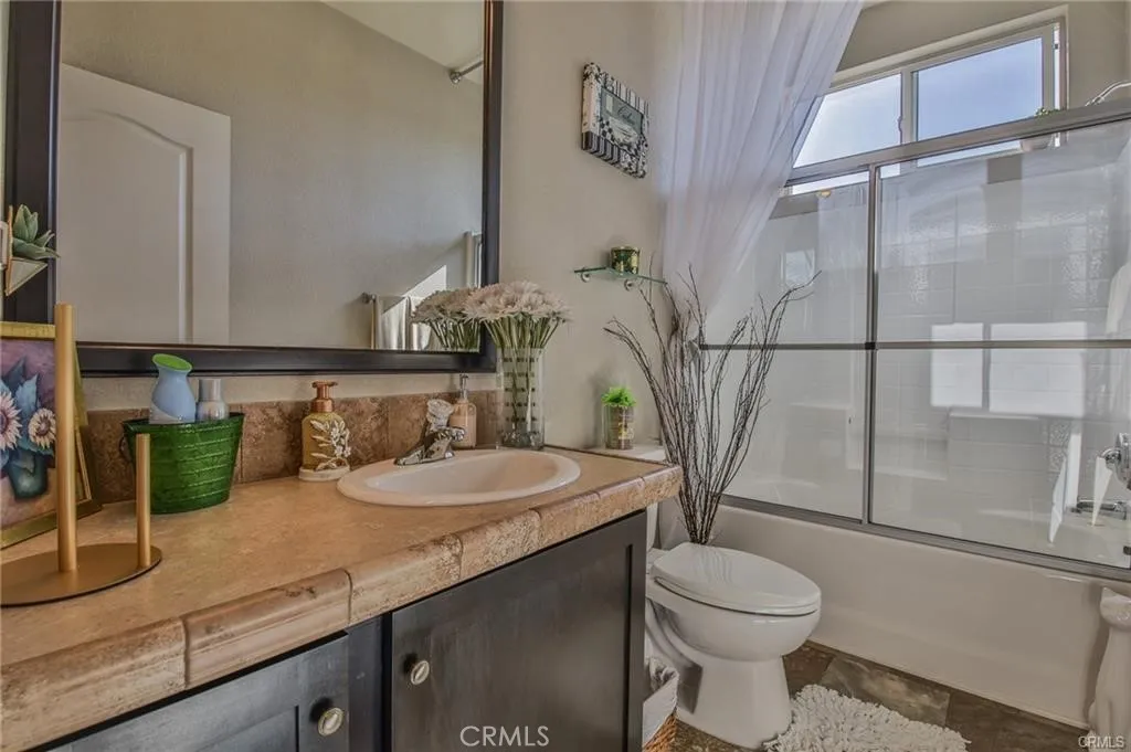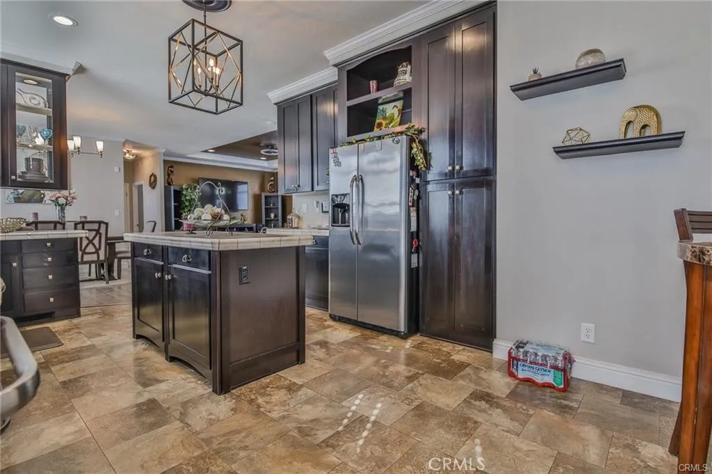 Turnkey 3-Bed, 2-Bath Home with Finished Garage & Owned Solar in Gated Community! Breathtakingly gorgeous luxury home with immaculate 2-car finished garage, owned solar system for energy efficiency (includes transferable warranty), and beautiful backyard oasis in all nestled prime location in coveted gated community. Built in 2017, this beautifully upgraded single-level home offers 3 bedrooms, 2 bathrooms, and luxury living in a secure, resort-style gated community. Featuring 10-ft ceilings, crown molding, recessed lighting, and coved ceilings, the open floor plan feels bright, airy, and upscale. Designer paint, stylish flooring, and ceiling fans add to the home's elegance and comfort. The spacious great room is filled with natural light and flows seamlessly into the dining area and chefs kitchen, which features custom cabinetry, gleaming countertops, a center island with outlet, and a modern glass display cabinet. Stainless steel appliances are included: refrigerator, dishwasher, microwave, stove, oven, and a deep farmhouse sink with upgraded faucet. A striking chandelier elevates the dining experience. The private primary suite offers a peaceful retreat, complete with a bonus sitting areaideal for an office, vanity, or lounge. The en suite bathroom includes a soaking tub, walk-in shower, and dual vanities with ample counter space. Two additional bedrooms are generously sized and share a well-appointed full bathroom with dual sinks and shower/tub combo. A dedicated laundry room provides extra storage and side-by-side washer/dryer hookups. This energy-efficient home include