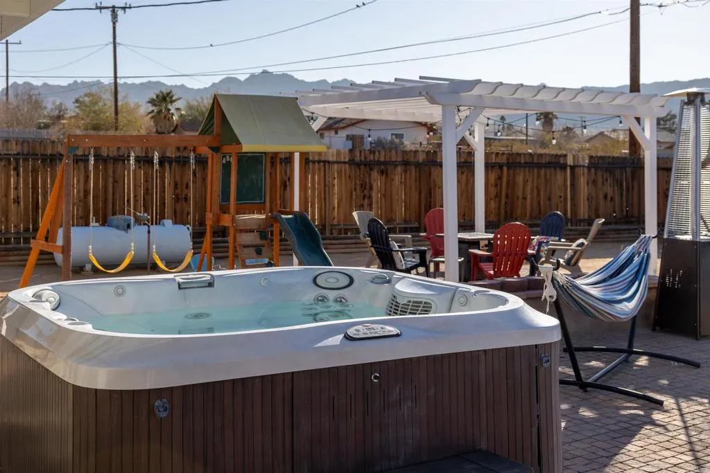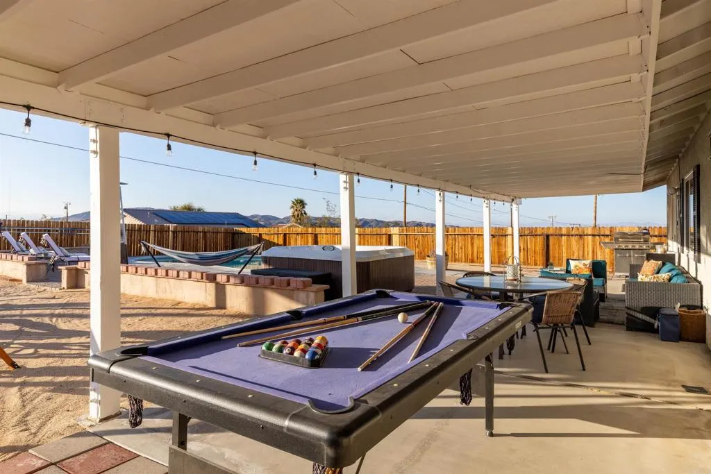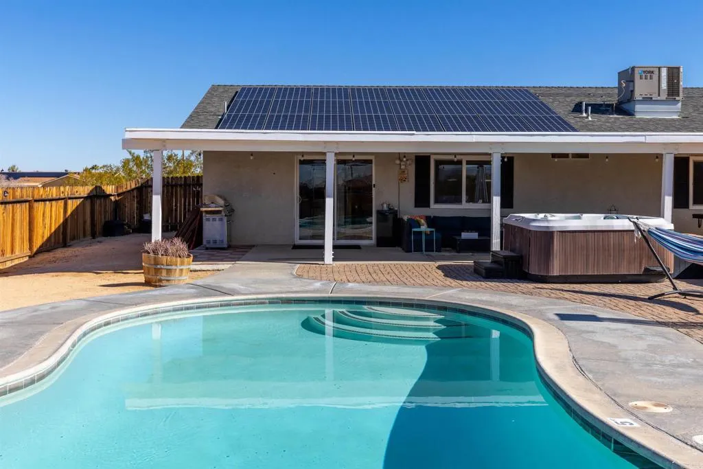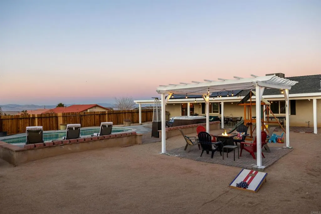 Welcome to Your Desert Oasis!?Discover paradise in this beautifully maintained, newer home nestled in the highly desirable Indian Cove neighborhood. This 3-bedroom, 2-bath gem offers the perfect blend of comfort and luxury featuring a sparkling saltwater pool, relaxing jacuzzi, and a private fenced backyard designed for serenity and entertaining. Enjoy sun-filled days under the covered patio or unwind beneath the elegant gazebo while taking in stunning desert views. Inside, the home boasts a modern chefs kitchen with granite countertops and stainless steel appliances, sleek tile flooring, and central air & heat for year-round comfort. The finished garage adds extra functionality, and the homes location just minutes from the base, offers convenience without sacrificing peace and privacy. This is more than a home, it's your personal retreat in the desert. Come experience it for yourself, your clientswillbeamazed!
