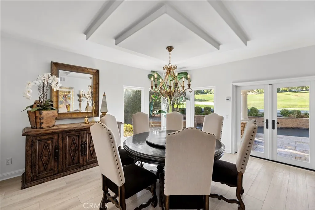 Experience refined living in this golf course estate, nestled on the 6th hole of the prestigious Marbella Country Club. This exquisitely updated residence blends timeless elegance with modern comfort. A gracious inviting foyer introduces the home, leading to a sun-drenched formal living room where expansive windows and high ceilings create a light filled, welcoming ambience. Adjacent is an elegant dining area, perfect for memorable gatherings and seamlessly flowing outdoors to the poolside oasis. The thoughtfully designed chef's kitchen showcases an expansive island with ample seating for casual dining, quartz countertops, premium stainless appliances, custom cabinetry and a bright breakfast nook overlooking pool and golf course views. The kitchen extends into the informal living area anchored by a sophisticated bar for effortless entertaining. The oversized primary suite serves as a private sanctuary, featuring a cozy double-sided fireplace, spa inspired bath with soaking tub and dual head shower, generous walk-in closet, and private balcony with sweeping views. Two additional bedrooms in the main house - or an optional office and bedroom - share a beautiful Jack-and-Jill bath. Resort-style outdoor living includes a sparkling pool and spa with waterfall, built in BBQ and bar, and a covered area with fireplace - all framed by fairway views. The detached casita/guest house above the second 2 car garage - perfect for golf cart parking - offers its own entrance, private bath with washer/dryer and balcony - ideal for guests or multi-generational living. A truly exceptional resi