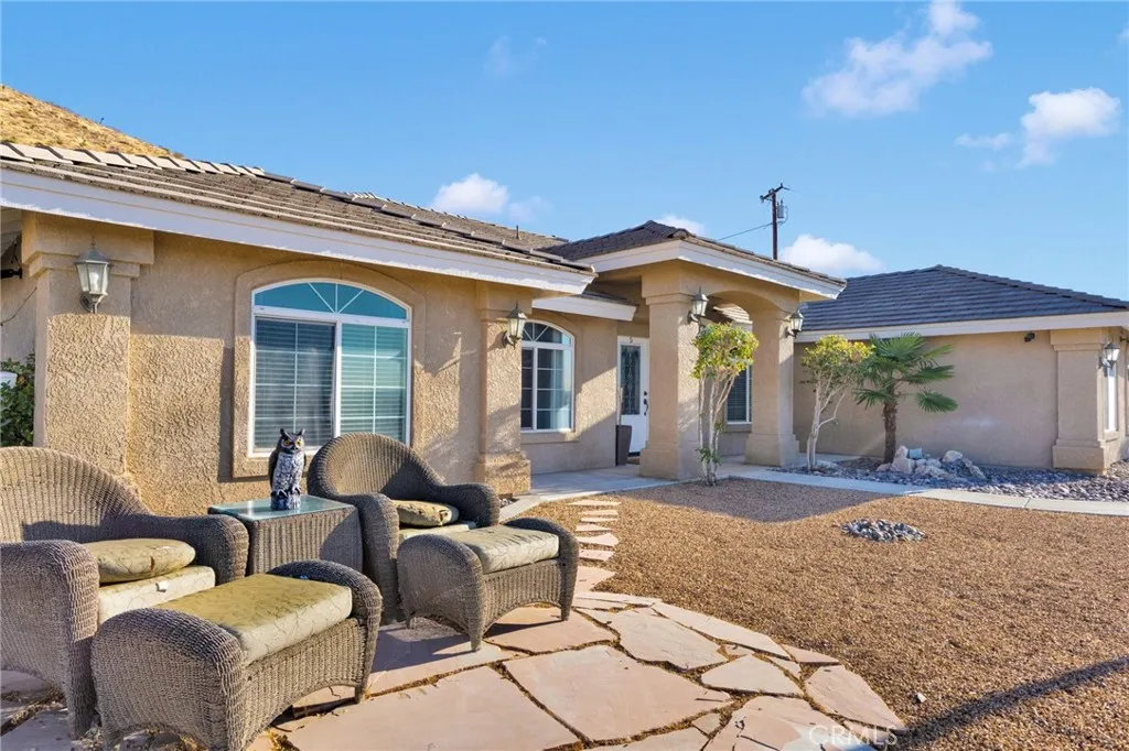 If VIEWS and SPACE are a priority for you- You're going to have to experience this home IN PERSON! From the moment you arrive, youll be captivated by the gorgeous front yard, inviting front porch, and stunning panoramic views of the desert landscape. Step inside to find a thoughtful layout filled with both comfort and versatility. You will appreciate elevated ceilings making the home feel spacious throughout. To the right of the entry, the formal dining room sets the stage for family dinners or holiday gatherings, while the den/bonus room to the left is currently a home gym but could easily serve as a home office, game room, or additional living area. Down the hall, the spacious living room welcomes you with bright, airy windows and a cozy fireplaceperfect for chilly desert evenings. The kitchen is designed for both function and style, offering ample countertop space, a breakfast bar for your morning coffee, a cheerful breakfast nook, updated appliances, and a walk-in pantry. Large windows frame picturesque views of your private neighborhood while filling the space with natural light. The primary suite is a true retreat, complete with private access to the covered patio, a spa-like bathroom with a soaking tub, walk-in shower, dual sinks, a vanity area, and a walk-in closet with plenty of storage. Two additional bedrooms and a full bathroom provide ample space for family or guests, while the laundry roomwith sink and cabinetsadds extra convenience. For those who love the outdoors and adventure, the attached 3-car garage offers plenty of storage for desert toys, while side RV