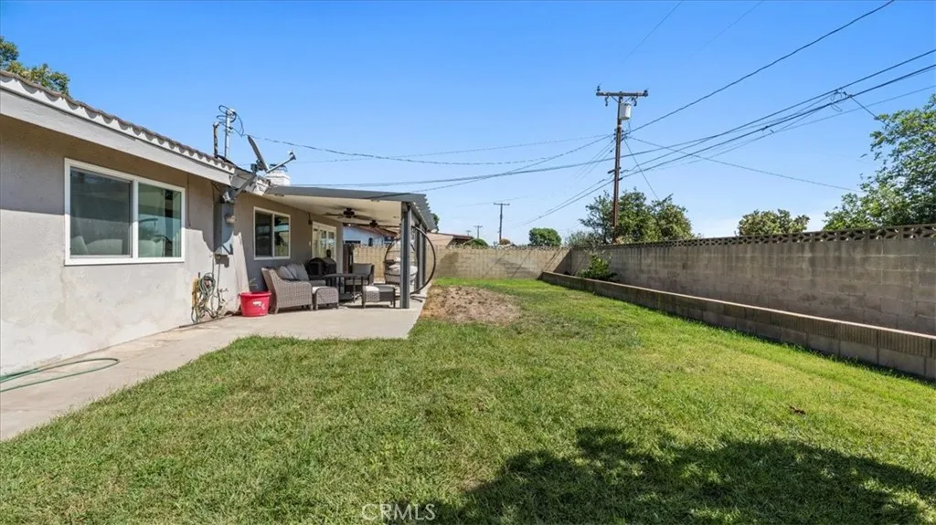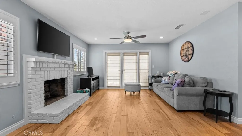 Step inside this beautiful home and be welcomed by a stunning stone fireplace in the living room, perfect for cozy gatherings. Wood flooring flows throughout, complementing the elegant kitchen with stylish cabinets, countertops, and appliances. Spacious, light-filled rooms feature large windows and new ceiling fans, creating an inviting atmosphere. This home boasts numerous upgrades, including all-new double-pane windows with shutters, fresh interior paint, and a recently upgraded HVAC system (8 years old) with new venting. The guest room includes a French door, while the master suite offers a newly remodeled bathroom for modern comfort. Additional enhancements include a new garage door opener, updated ceiling fans, and a premium Alumawood patio cover. With 4 generous bedrooms, automatic sprinklers, a durable metal roof, and both wood-burning and gas fireplaces, this home combines comfort with functionality. Outdoors, enjoy a covered back patio, open yard space, and mature avocado and orange treesall situated on a private cul-de-sac.