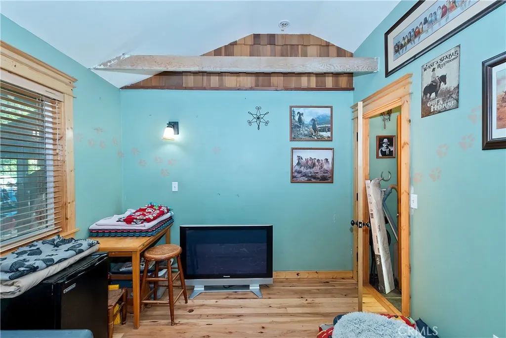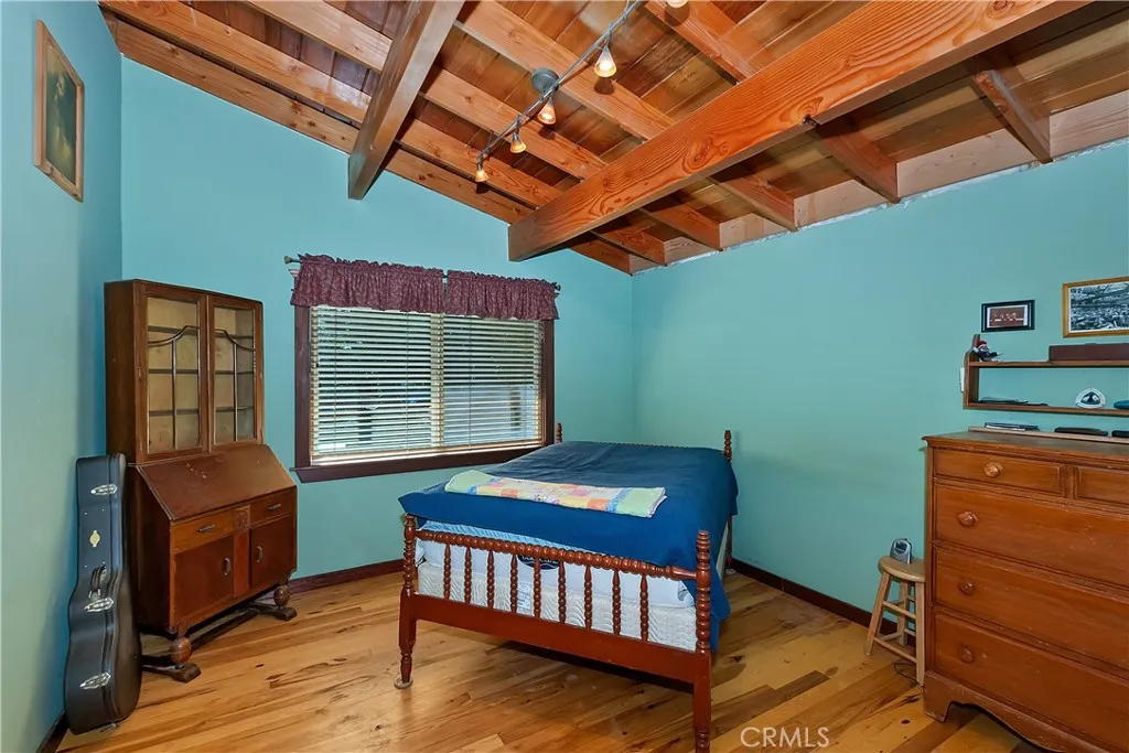 Meander up a tree-lined driveway, all the way to the top, there you will find a private cabin with lot's of mountain charm. It is located in the town of Cedar Glen with quaint country stores, the famous Cedar Glenn Restaurant, Post Office and so much more. On a large lot with plenty of privacy, lot's of hiking trails behind the home and so much history. The lot has many trees, just a few to mention is the apple tree, apricot tree and a pear tree too! The main house has two spacious bedrooms and one bath with laundry located in the bathroom closet., corian counter with beautiful rock work , a tile shower with the same beautiful rock work. Open kitchen with farm size sink, corian counters, trash compactor, dishwasher, lot's of hickory (once know as pecan) wood cabinets and flooring. The living room is open to the kitchen with a charming wood fireplace, beautiful wood beams with more quality woodwork throughout the cabin and plenty of windows to let the sunshine in. There are two additional rooms across from the main house that were permitted as office and hobby room. The garage is being used now as the seller's workshop originally built as a 1.5 car garage. There is air condition and central heat in the main house for all the different seasons in the San Bernardino mountains. The main house was rebuilt in June 2005 from the bare "studs up". This is a special cabin you will want to call home and not want to leave!