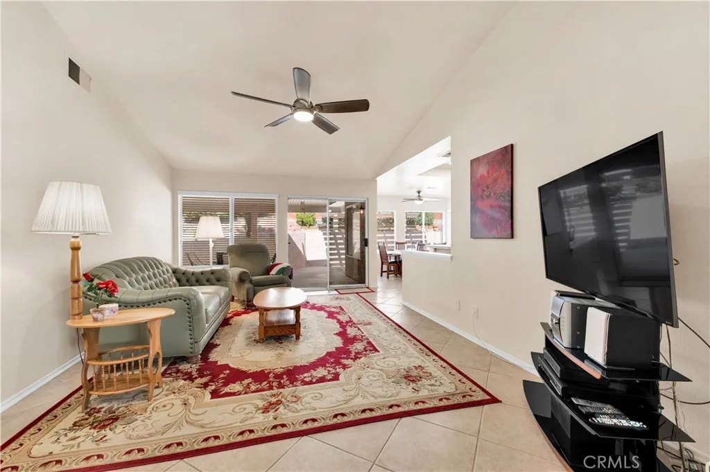 Beautiful and Rare 3 Bedroom 2 Bathroom Home with Gated RV Parking located in the highly desirable 55+ Age Serenade Community conveniently located in the heart of Menifee . This home is within a 55+ Community but does not have an HOA and offers Low Taxes. Step inside to a light filled home with an open floor plan . The upgraded tile flooring flows throughout the high traffic areas including family room , kitchen , hallways and bathrooms with carpet in the Living Room, Dining Room and all bedrooms. The spacious living room is located at the front of the home with a cozy fireplace. The hallway leads to 3 spacious bedrooms . The first bedroom is privately located for guests or a home office. Double doors open to the spacious primary suite with en-suite bathroom offering double vanities, luxurious soaking tub, and walk in shower plus a generous sized walk in closet . Your kitchen features lots of cabinets,pantry , abundant counter space , stainless steel appliances , large dining area , and open to the family room with large windows and views of your tranquil backyard . Enjoy serene outdoor living with easy to maintain front landscape and relaxing backyard with beautiful landscape and fruit trees to enjoy from your Alumnawood Patio stretching the entire length of the home plus a large side yard with shed. Additional highlights of this home is the inside laundry room , oversized 2 car garage with workshop , NEW AC unit in 2022, and Affordable Energy Efficient Solar Power Purchase Agreement keeping your home energy bills low . Don't miss this wonderful home and community !!
