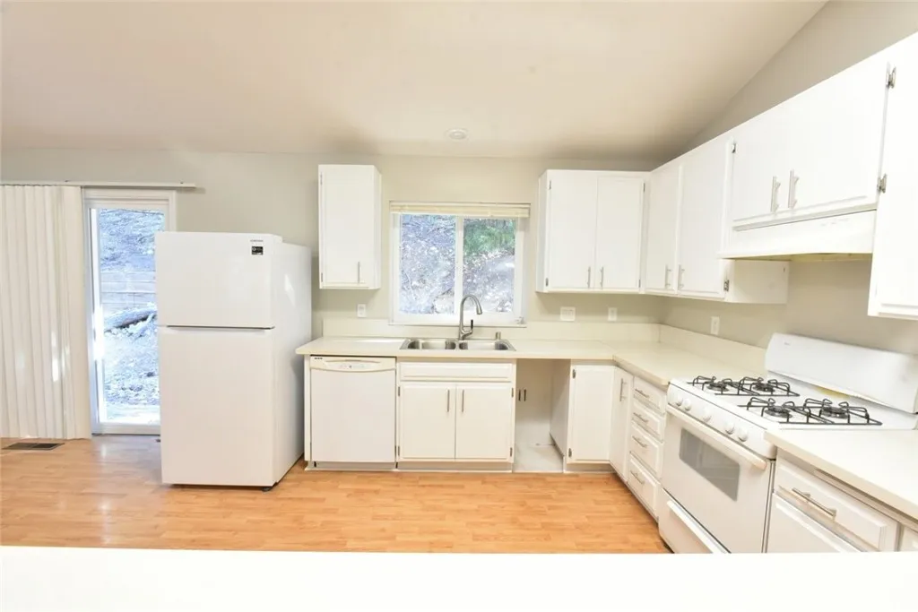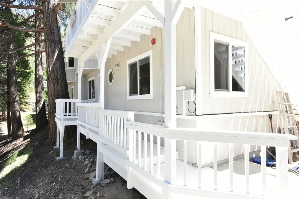 Welcome to this beautifully updated Crestline property featuring both a spacious main home and a fully renovated attached ADU/in-law suite, perfect for multi-generational living or income potential. The main home offers approximately 1,918 sq. ft. with 3 bedrooms, each featuring its own walk-in closet, and 2 bathrooms. The primary suite is generously sized to accommodate a king bed and sofa, complete with a large walk-in closet and en-suite bathroom. The kitchen has been upgraded with quartz countertops and opens seamlessly to the living room, highlighted by a cozy fireplace. Additional features include an indoor laundry room and numerous updates within the last 7 years, including dual-pane windows, refreshed bathrooms and kitchens, new flooring, interior paint, and a new main water line. The attached ADU/in-law suite spans approximately 1,280 sq. ft. with 2 bedrooms and 2 bathrooms. Its open-concept kitchen features a large island, updated stainless steel range, microwave, and dishwasher, and flows into the living area. The primary suite boasts two large double closets, an en-suite bath, and access to a private walk-out deck. This unit also includes indoor laundry. The property sits on a large lot with a concrete and asphalt pull-through driveway, providing ample parking and convenience.