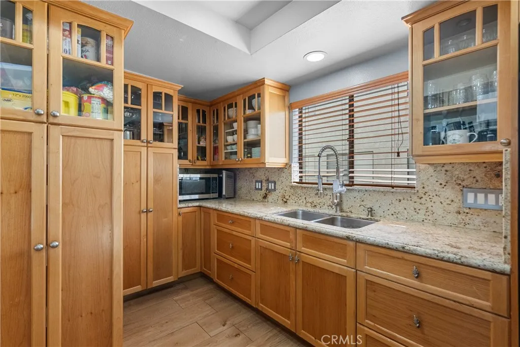 Welcome to 15554 Parthenia St Unit 6, North Hills a stylish and move-in ready townhome offering 2 bedrooms and 3 bathrooms across 1,297 square feet of modern living space. Perfect for first-time homeowners, this residence combines thoughtful upgrades with functional design in a gated community with well-kept grounds. Step inside to find an open-concept layout highlighted by wood-like floors and abundant natural light. The kitchen is a true centerpiece with granite countertops, an oversized island with a waterfall edge, open glass cabinets, and sleek stainless steel appliancesideal for both everyday cooking and entertaining. The living and dining areas flow seamlessly, creating a warm and inviting space to relax and gather. Upstairs, the primary suite offers a peaceful retreat with vaulted ceilings, its own private balcony, a custom closet with built-in organizers, and a large bathroom complete with double sinks. The secondary bedroom also features mirrored closet doors and easy access to another upgraded bathroom, making it comfortable for family, guests, or a home office setup. Practical amenities include a two-car attached garage with direct access, ample storage, and the convenience of lots of built-in cabinets and a convenient laundry area. The HOA takes care of water, trash, insurance, and grants access to a sparkling pool, secure gated entry, and beautifully maintained grounds, allowing you to enjoy a low-maintenance lifestyle. Located in the heart of North Hills, this home is close to shopping, dining, schools, and easy freeway access, providing the perfect balance