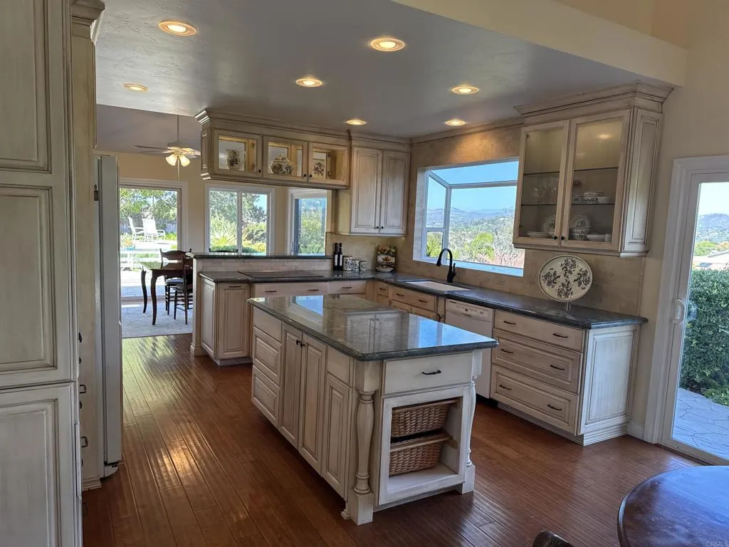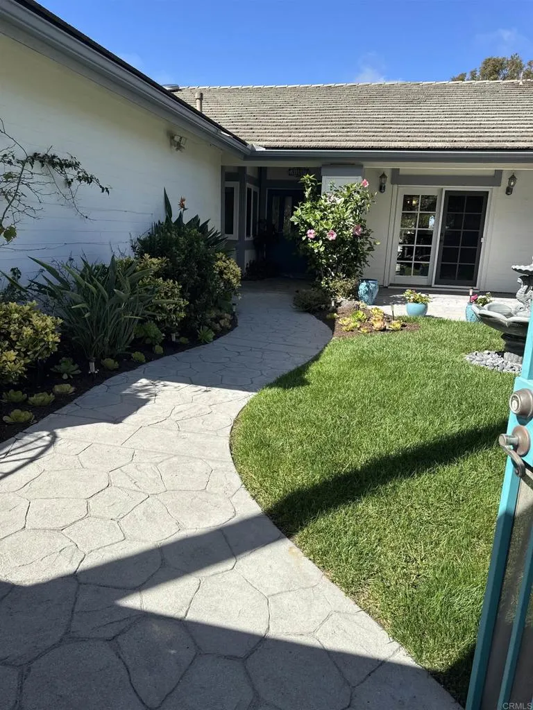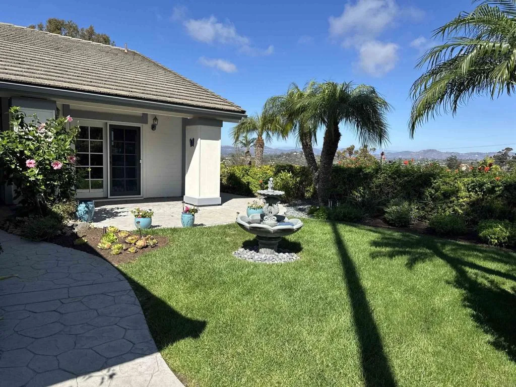 Rarely available single-level home in the heart of Solana Beach with panoramic 180 views of the Rancho Santa Fe hills and beyond. This former model showcases vaulted ceilings with exposed beams, wide-plank hardwood floors, and an open-concept layout filled with natural light. The reimagined chefs kitchen features custom cabinetry, premium appliances, and a spacious island. The primary suite offers vaulted ceilings, direct access to the backyard, and a recently updated bath with walk-in shower, bench, and luxury vinyl flooring. Enjoy seamless indoor-outdoor living with a lush yard, paved garden paths, and tranquil sitting areas to take in the view. Conveniently located near top-rated schools, beaches, Del Mar Racetrack, dining, and shopping. A rare opportunity to experience the Solana Beach lifestyle.