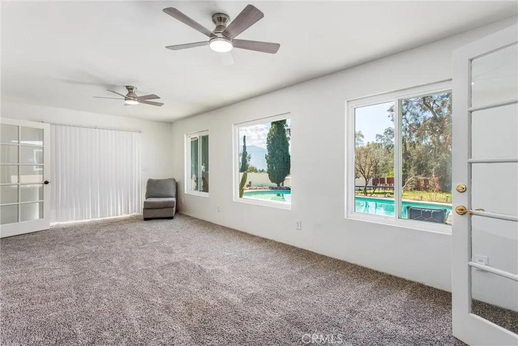 Beautiful Single-Story Pool home with an attached Mother-N-Law Quarters. Perfect for multi-generational living, entertaining, or simply relaxing in your own private retreat. Situated on a spacious lot, this home features a versatile layout with a separate guest/in-law suite at the back of the house. Whether used as a one-bedroom apartment, pool house, or private quarters, this flexible space adds tremendous value and convenience. The freshly painted exterior and brand-new energy efficient roof offer great curb appeal, while inside, youll find a light-filled interior with new neutral paint and high-end vinyl plank flooring throughout. The remodeled kitchen is a true highlight, featuring an oversized deep-dish sink, sleek new appliances, ample storage, updated cabinetry, new counters, and a stylish backsplash. The adjoining dining area and open family room create an inviting space to gather and unwind. Both bathrooms have been beautifully renovated with modern vanities, fixtures, and mirrors, giving them a luxurious, spa-like feel. The spacious bedrooms are filled with natural light, enhancing the homes airy and welcoming atmosphere. Additional features include: A spacious garage with extra storage, Room in the driveway for a small RV or boat, Newer dual-paned windows that are energy efficient, sound resistant, and with a 16-year warranty, No HOA or Mello-Roos tax. Step outside into your private backyard oasisan entertainers dream with a large pool and a tranquil fountain pond. Conveniently located near top rated schools, shopping, and entertainment, this home offers the perf