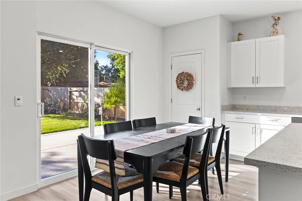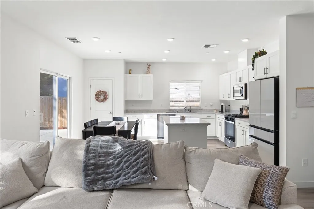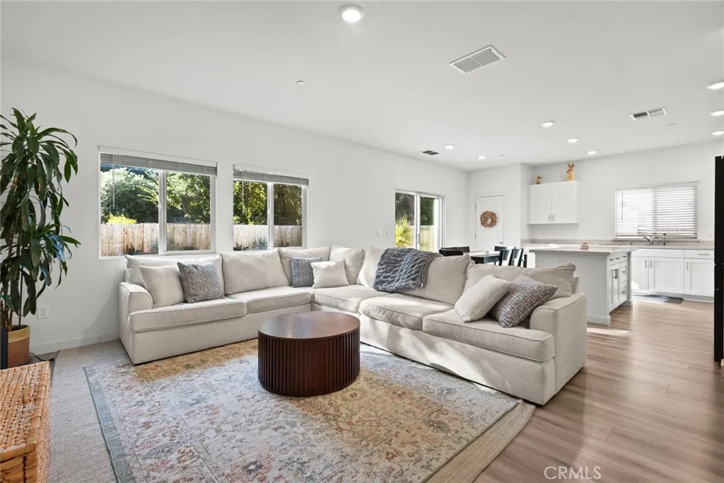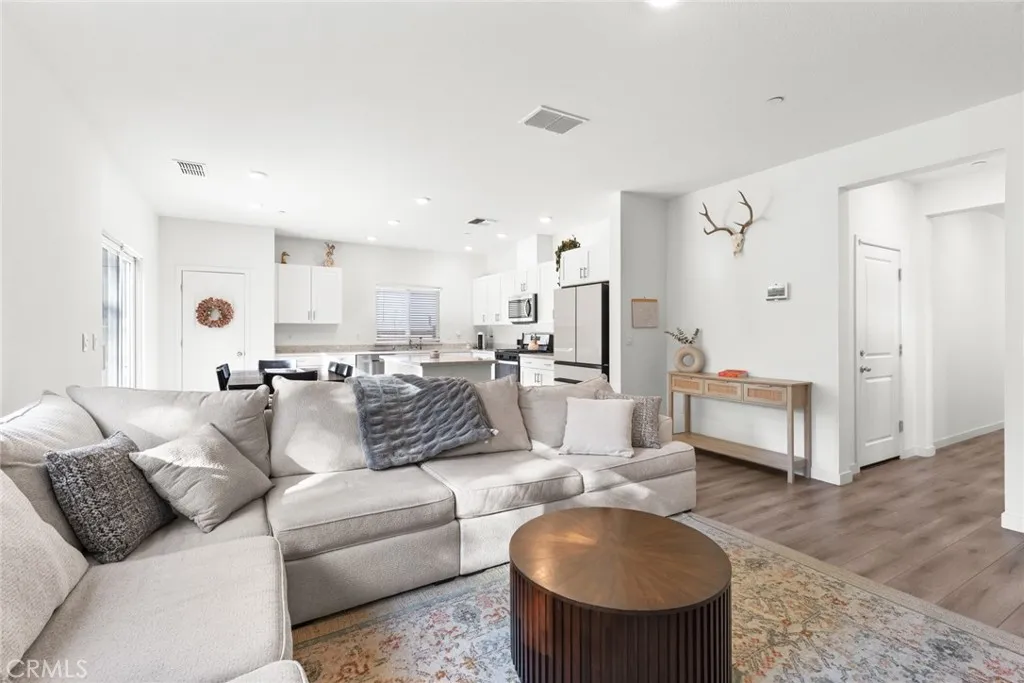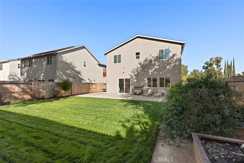 Better than new! This D.R. Horton home has been lived in just 1.5 years, saving you thousands with backyard landscaping and window coverings already complete. Set on arguably one of the best lots in the neighborhoodwith no neighbor on one side and no two-story homes behindyoull love the sense of privacy and space this property offers. Step inside and youre greeted by open-concept living, complete with recessed lighting, and waterproof hybrid-core flooring that flows throughout. The kitchen is both stylish and functional with crisp white cabinetry, quartz counters, stainless steel appliances, a gas range, and a large center island that makes the perfect gathering spot. The spacious primary suite is a true retreat with a walk-in closet and en suite bath featuring dual sinks and quartz counters. The guest hall bath also includes dual sinks, while the downstairs guest bath adds a touch of warmth with its modern wood vanity. Out back, the yard was designed for living and entertaining. A massive 30 x 14 concrete patio sets the stage for barbecues and gatherings, while the lush lawn and raised garden beds add charm and versatility. There is also a side yard big enough for a small trailer. This is also a true smart homeequipped with cameras, video doorbell, thermostat, garage, and front door accessall easily controlled through the ADT app. With energy-saving solar panels, an attached two-car garage, and thoughtful upgrades throughout, this home combines modern convenience with everyday comfort. From its premium lot and smart features to its stylish finishes and move-in ready upgrad