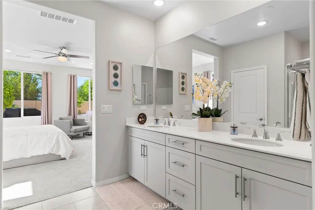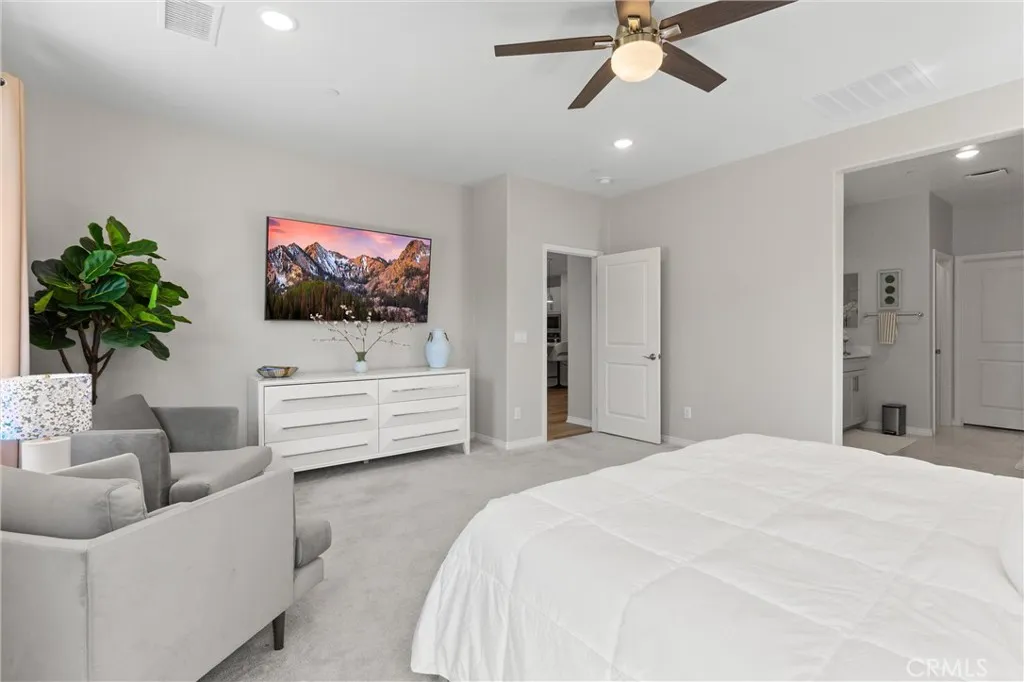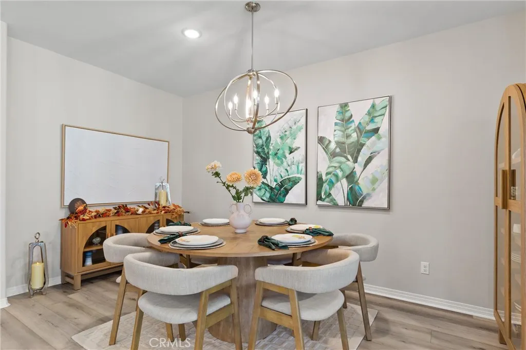 Welcome to this stunning 2023-built home in the prestigious Four Seasons at Terra Lago, an exclusive 55+ gated community in Indio, one of Riverside County's fastest growing cities. This meticulously upgraded residence offers 2,152 square feet with 2 bedrooms, 2.5 bathrooms, and a flexible optional third bedroomperfect for a home office, craft room, or guest suite. Step inside to discover premium luxury vinyl plank flooring flowing throughout the main living areas, with plush carpeting in the bedrooms. The gourmet kitchen showcases elegant quartz countertops, stylish backsplash, and an oversized island perfect for entertaining. Upgraded lighting fixtures create the perfect ambiance, while the added fireplace adds warmth and sophisticationa rare and coveted feature in this community. The backyard is a true entertainer's paradise requiring virtually no maintenance! Professionally landscaped with artificial turf, beautiful pavers, and a charming gazebo, this outdoor oasis is move-in ready. Fresh fruit trees add a delightful touch, allowing you to enjoy homegrown citrus. With spectacular mountain views as your backdrop, this turnkey space is perfect for hosting or relaxing. Four Seasons Terra Lago boasts an impressive 22,000 sq ft recreational facility featuring a state-of-the-art fitness center, salon, yoga studios, library, billiard room, ballroom, bistro, & indoor/outdoor pools. Enjoy golf, tennis, pickleball, & countless organized activities. Located minutes from the Acrisure Arena, casinos, hiking, golf & dining/shopping in Indio. Easy freeway access puts La Quinta, Palm De
