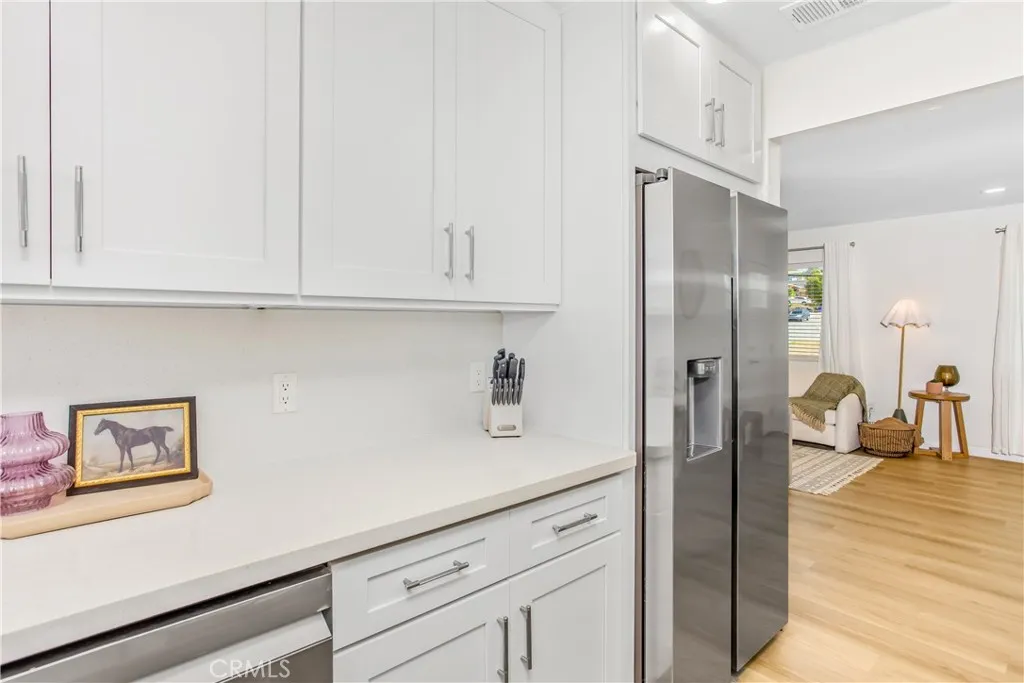 Welcome to this beautifully reimagined California Modern Ranch home, offering the perfect blend of comfort, convenience, and style. Ideally situated near the I-10 freeway, Trader Joes, Starbucks, In-N-Out, Chick-fil-A, and a variety of shopping and dining options. This home is truly a commuters dream with freeway access in less than two minutes. Featuring 3 bedrooms and 2 bathrooms, this thoughtfully upgraded residence showcases designer touches throughout. Enjoy durable vinyl plank flooring, recessed lighting, and ceiling fans in every bedroom. The home is also equipped with a Bluetooth wireless built-in speaker system, allowing seamless audio in the living area and kitchen. At the heart of the home is the custom kitchen, which features quartz countertops, soft-close cabinetry, stainless steel appliances, under-cabinet lighting. Both bathrooms have been tastefully updated, and every closet is enhanced with built-in lighting for added convenience. Step outside to an enclosed patio and a spacious backyard on 0.33 of an acre. With an extended driveway, theres room for multiple vehicles or even RV parking, not to mention the fully drywalled garage with recessed lighting. The backyard offers endless potential, a blank canvas where you can create your dream outdoor space or even add a pool one day. The front yard features low-maintenance landscaping with a sprinkler and drip system. This home is a rare find where every detail has been carefully considered for modern living. Dont miss the opportunity to make it yours!