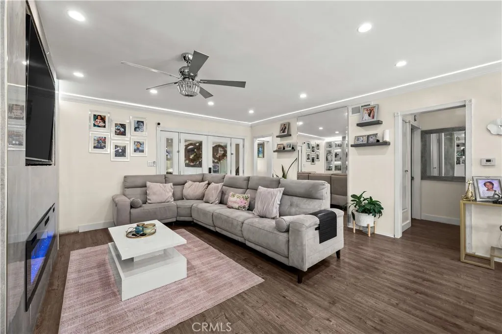 Welcome to 8849 Pico Vista, a charming 5-bedroom, 2-bath corner lot home located on a quiet non-through street in the desirable southeastern edge of Pico Rivera. Garage has been divided as a home office with a sliding door access to the back yard. This spacious residence offers a thoughtfully designed layout, featuring a large living and dining area filled with natural light, a medium-sized gallery kitchen with quartz countertops, back splash, tile flooring and CAFE Brand appliances. A convenient laundry area right off the kitchen. The home includes laminated flooring and updated tile in key areas. Ceiling fans throw-out the home. Enjoy outdoor living with a rear patio ideal for gatherings, while the semi-attached 2-car garage and driveway, accessible from the cul-de-sac, provide ample parking. Additional highlights include central heating and the peace of mind that comes with a well-maintained, move-in ready home. With easy access to the 605, 5, and 105 freeways, youre just minutes from Downtown Downey, Downey Landing, and The Promenade at Downey. Dont miss the opportunity to own this spacious and inviting home in a convenient location!