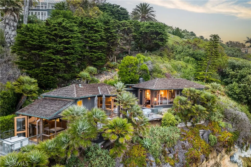 The true feeling and spirit of old Laguna lives on - in the Cypress Compound. Privacy, architectural excellence, and untouched natural splendor converge on maturely landscaped coastal acreage to create a legacy estate. Perched above Thousand Steps Beach, this singular oceanfront compound has been mindfully renovated, with all three structures retaining their original historic footprints. The irreplaceable Chris Abel-designed main residence, anchored by a Monterey Cypress, rests on a bluff 70 feet above the surf, offering seclusion and uninterrupted coastline vistas. This single bedroom architectural gem consists of a spacious living salon, a kitchen overlooking the sand, and a sizable deck for all-season enjoyment. Two fully-equipped bungalows serve as a well-appointed extension of the primary quarters. The upper features a one-bedroom apartment while the lower structure offers a two-bedroom flat on the top level and a one-bedroom accommodation with a large multipurpose living room below, all with individual kitchens. The pristine grounds have been consciously landscaped with native plants and mature trees, creating an unspoiled retreat. The estates amenities are truly remarkable. An exclusive double-gated staircase with an observation deck leads to a roped-off, 15 ft deep privately owned beach area which extends along the oceanfront property line. Thoughtful consideration was given to not overbuilding this incredible parcel yet it does not lack incredible modern improvements: a 45+ ft long infinity edge pool with first-row views of the Pacific was added in recent years. Ad