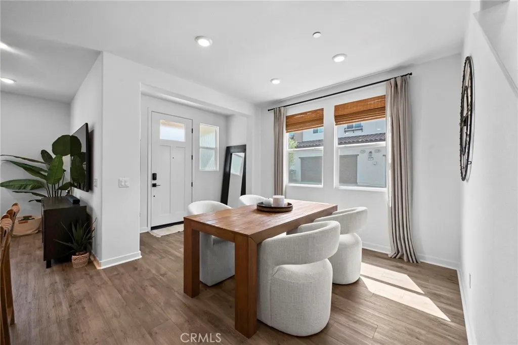 Welcome to 3959 Lavine Way #101, nestled in South Coronas Averly at Bedford by Tri Pointe Homes where modern living meets scenic serenity. This end-corner residence offers the perfect blend of style, comfort, and efficiency with paid-off solar, ensuring energy savings from day one. Set against the breathtaking Santa Ana Mountains, this Farmhouse-style home exudes warmth with wide-plank laminate flooring, upgraded carpet, and White Shaker cabinetry throughout. The open-concept design creates a bright and spacious atmosphere, enhanced by recessed lighting and smart-home features. Enjoy seamless control of your locks, thermostats, lighting, and garage via HomeSmart Technology, supported by a Mesh WiFi system for full-home connectivity. The EV-charging ready garage adds convenience for eco-friendly living. Located within the gated Bedford Master Plan, residents have access to resort-style amenities including The Hudson House clubhouse, pools, spa, BBQ areas, and community events. Just minutes from Bedford Marketplace, local dining, and entertainment, this home offers both tranquility and accessibility. Experience a connected, sustainable lifestyle surrounded by natural beauty welcome home to Bedford Community.