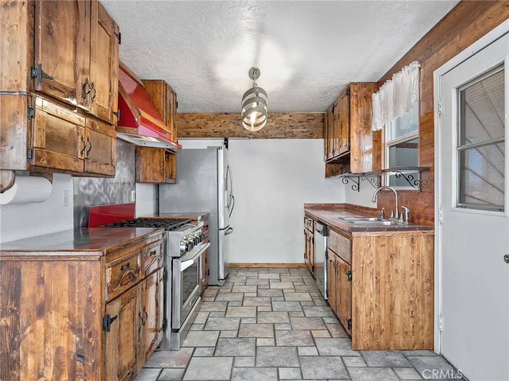 Tucked away in a peaceful Hesperia neighborhood, 17809 Hercules Street blends spacious living with charm and everyday practicality. This well-kept 3-bedroom, 1-bath residence sits on a generous 1.24-acre fully fenced lot ideal for Horses, RVs, off-road vehicles, gardening, or future expansion. Step into a thoughtfully designed 1,053 sq ft floor plan that feels both welcoming and functional. The living spaces are filled with natural light from updated dual-pane windows, and ceiling fans help maintain year-round comfort. The kitchen stands out with custom wood cabinetry, stainless steel appliances, a 6-burner gas KitchenAid range with hood, and an included refrigerator perfect for everyday cooking or entertaining. The dining area, complete with a bay window, offers a sunny spot to enjoy your meals. Additional features like hallway storage cabinets add to the homes smart use of space. In the detached 2-car garage, youll find indoor laundry hookups, and the washer and dryer are included. New Septic System being installed before closing. Outside, the property continues to impress with a circular driveway, detached carport, multiple sheds, and a covered back patio thats ideal for relaxing or hosting guests. Enjoy scenic mountain views and a quiet atmosphere all while being just minutes from Main Street, I-15 Freeway access, and close to schools, restaurants, and shopping. Whether you're seeking extra space for hobbies, equipment, or future plans, this high-desert gem offers room to live and grow. Dont miss the opportunity to make it yours.