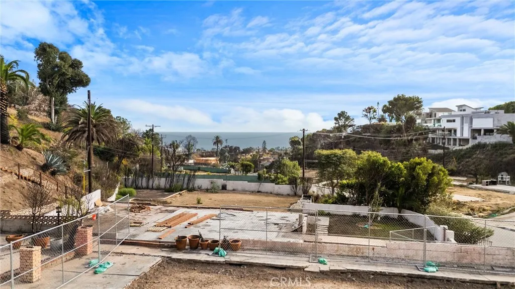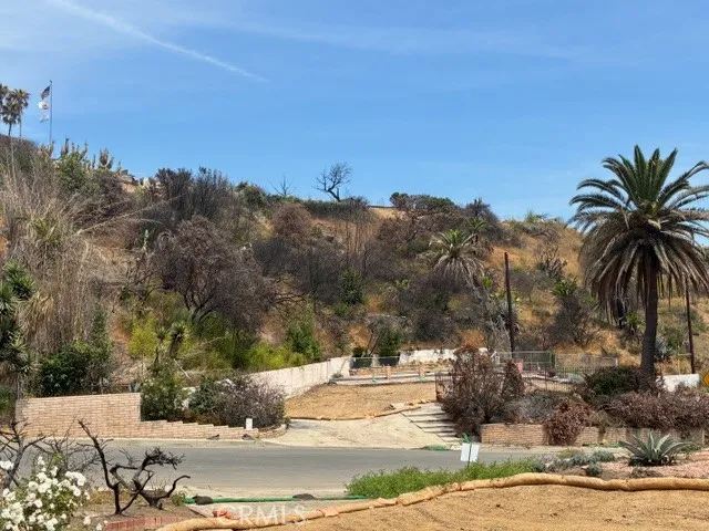 Discover this exceptional half-acre lot in Pacific Palisades, perfectly perched on its own level. This parcel offers unmatched seclusion and breathtaking Catalina views on a clear day, as well as full ocean views from many areas and rooms. Fully certified completion of Phases 1 and 2 by the Army Corps of Engineers. Spanning nearly 24,000 square feet, the lot is ideal for a large home with expansive outdoor living areas, including patios and landscaped gardens. The existing former footprint is approximately 3,000 square feet, allowing for up to 6,000 square feet on two levels. The gently sloping hillside is highly accessible, featuring established trails that lead to a scenic hilltop vista and tranquil rest spot. Additionally, there is potential to extend the build area into the hillside, providing unique opportunities for creative design and functional use of the terrain. A sizable mid-century modern pool remains on-site, awaiting refinement to become a stunning outdoor centerpiece. Situated just moments from the future and newly reconstructed Marquez School, the property offers convenient access to scenic walking trails, panoramic vistas, and outdoor recreation. Elevated above street level, the parcel ensures complete privacy, with no neighboring properties on either side, making it an ideal blank canvas to realize your dream home in one of the most prestigious neighborhoods in Pacific Palisades.