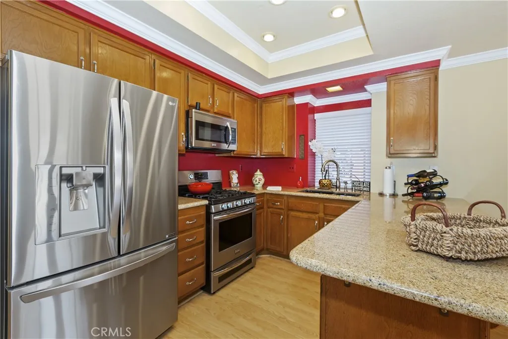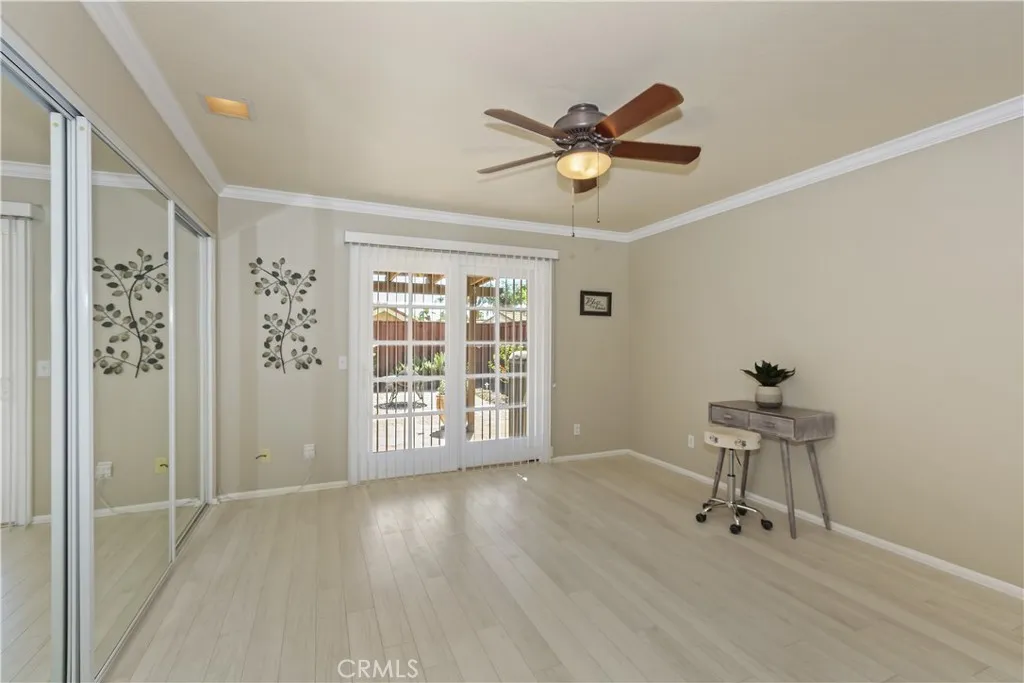 Don't miss this beautifully maintained home in the wonderful Terra Vista neighborhood of Rancho Cucamonga! Step into the formal living room, highlighted by a cozy fireplace with tile hearth and classic mirrored mantel. The upgraded kitchen features a walk-in pantry, granite countertops, stainless-steel appliances, an updated sink & faucet, recessed lighting, and crown molding that continues into the dining area. The master bedroom suite includes a large closet, sliding door access to the back patio, and a private bath with tub/shower combo, while the secondary bedroom connects to a Jack-and-Jill bath with a convenient walk-in shower. Both bedrooms are enhanced with crown molding, mirrored closet doors, and ceiling fans. Theres a dedicated indoor laundry area just off the kitchen. Outside, enjoy great curb appeal with the charm of drought-tolerant landscaping and a welcoming front porch. The backyard is designed for easy living with attractive brick and stone pavers, a covered patio, and well-appointed planter beds with automatic sprinklers in both the front and back. This home is ideally located near parks, shopping, and entertainmentincluding Victoria Gardens, the Lewis Family Playhouse, the Quakes Stadium (LoanMart Field), Ontario Mills, and morewith quick access to the 15, 210, and 10 freeways for a convenient commute. Come see it todayyoull be glad you did!