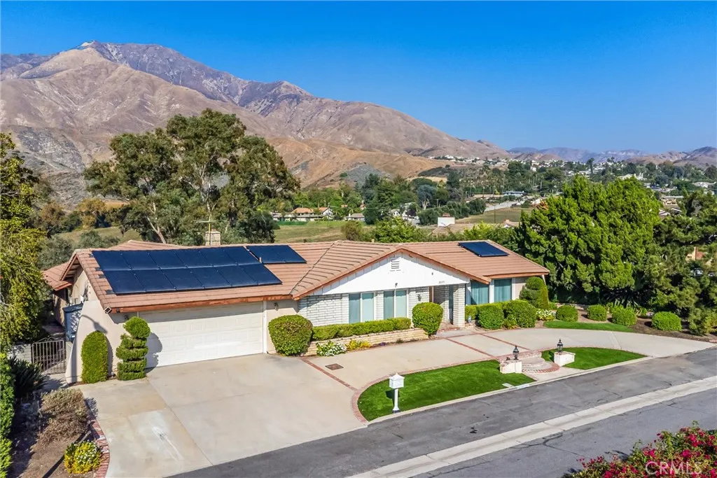 Opportunity Awaits! First time on the market in over 30 years, this well cared-for single-level home is ready to welcome its next chapter. Offering over 2000 sq. ft. of living space with 4 bedrooms, and 2 bathrooms, this rare property offers sweeping valley and mountain views from both front and back of the home. Step through the double-door entry into the formal living room, where a wall of windows overlook the valley below. The space flows seamlessly into the dining room, making it ideal for gatherings with views of the backyard and local mountain range. The kitchen, with its durable counters, double ovens, electric cooktop, and microwave, is both functional and inviting. A quaint breakfast nook, built-in desk, and ample storage make it both functional and efficient The spacious family room offers a more casual retreat with a cozy fireplace and sliders that open to the covered patio, the perfect spot to take in the mountain views. The private primary suite, located away from the other bedrooms, includes a walk-in closet and bath with a walk-in shower and dual sink areas. Three additional bedrooms share a full bath, offering plenty of room for family, guests, or a home office. Additional highlights include: Indoor laundry, direct garage access, newer solar panels (installed 2021) for energy savings, Low-maintenance front yard with turf, beautiful backyard with mature landscaping, concrete walkways, and a storage shed. This home offers a rare combination of space, views, and simplified livingall in a well-established neighborhood. Dont miss this opportunity to make it yours