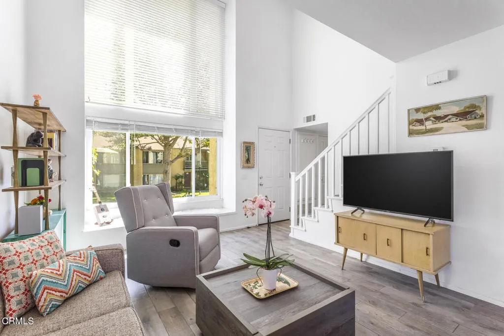 New Listing! Rarely available townhouse condominium in Todd Ranch 2. This beautiful unit features high ceilings, full front windows -- and a downstairs bedroom with a full bathroom. The upstairs features a large bedroom suite, and a full bathroom with dual vanities. There is another upstairs bedroom with a grand view of the large patio below. The unit comes with three parking spaces (a one-car garage, the driveway space and a numbered reserved space). This charming three bedroom, two bath unit has a beautifully updated kitchen that opens up to a grand living room with high ceilings and plenty of natural light. Another wonderful feature of this unit is the oversized patio with lush gardens, where your family and pets can enjoy an afternoon barbecue with the chirping birds and a nice coastal breeze. The unit is located in a prime location in the complex providing ample parking on a private street. Todd Ranch 2 has a swimming pool and clubhouse. The HOA dues include water and trash. Located within a Planned Urban Development (PUD) this property qualifies for Conventional, FHA and VA financing. Todd Ranch is an established, safe, friendly, all age community in a serene park-like setting. The complex is centrally located near restaurants, shopping centers, parks, recreation centers and top-rated multi-level schools. Don't miss this opportunity to own one of the most desirable townhomes in the complex and live in one of the most desirable neighborhoods in Ventura.