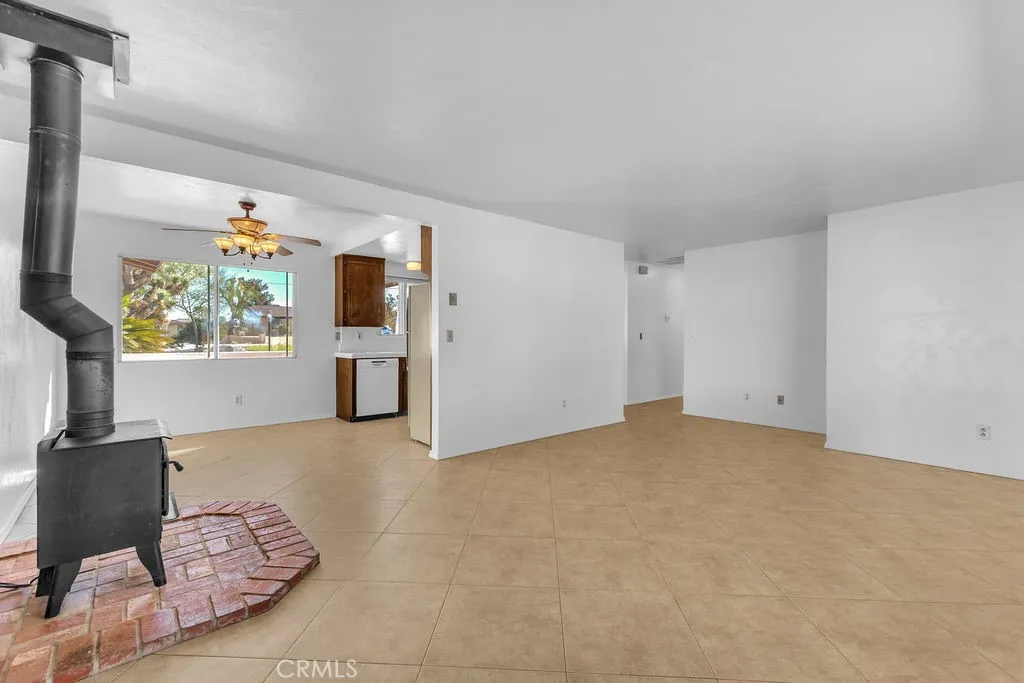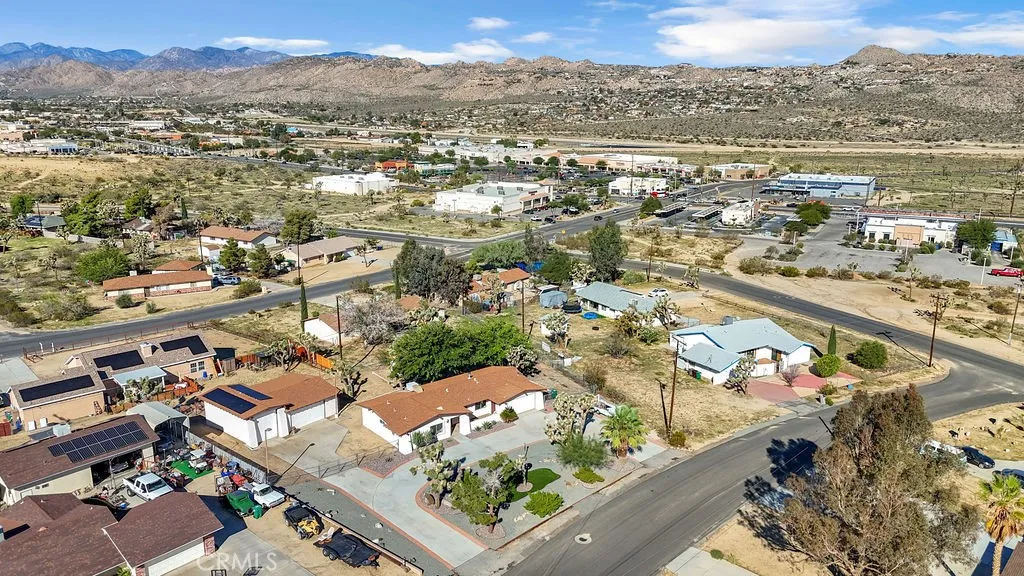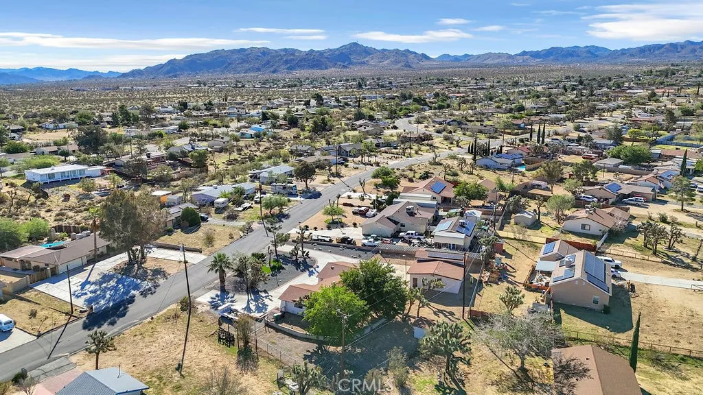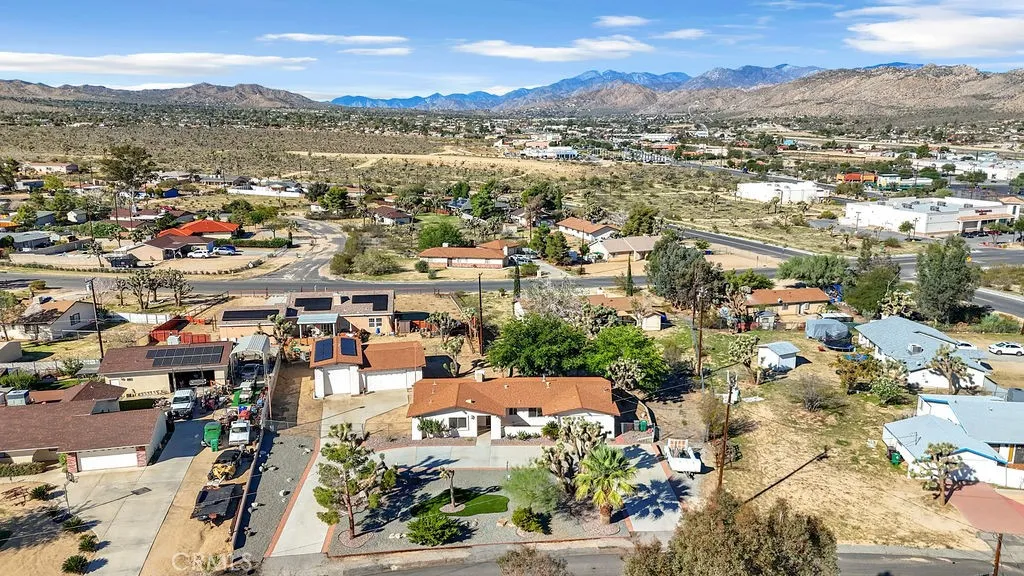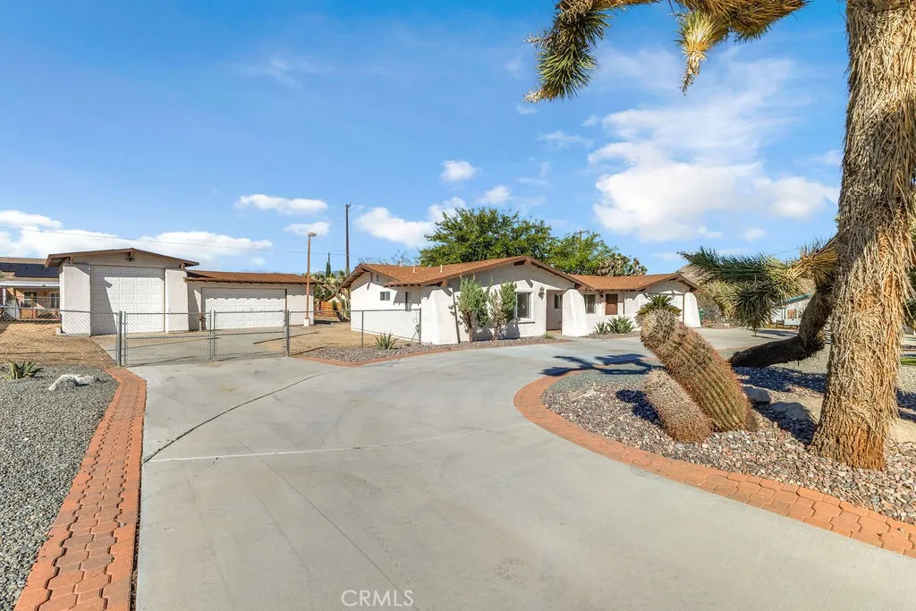 Welcome to 6938 La Habra Avenue in Yucca Valley, a beautifully updated three-bedroom, two-bathroom home offering both comfort and versatility. This property features fresh exterior paint with a lifetime transferable warranty, and is powered as an all-electric home with a solar lease at only $130 per month. The roof is in good condition and approximately five years old, while the newly landscaped front yard showcases clean desert rock for easy maintenance. A large circular driveway provides convenience, along with RV and trailer parking. In addition to the attached two-car garage, there is an impressive detached three-car garage/shop of approximately 1,200 square feet (40x30) that includes an office and bathroom, and is tall enough to accommodate a small RV. Inside, the home has new interior paint throughout, radiant ceiling heat, and a wood-burning stove for cozy desert nights. The primary bedroom features a walk-in closet, carpet that has been professionally steam-cleaned, and a private bath with a stand-up shower. The additional bedrooms offer ceiling fans, tile flooring, and ample space. The kitchen, while in original condition, is exceptionally well-kept and functional. Other property features include dual storm windows, a covered front porch, a rear covered patio, a shed, mature shade trees including fruitless mulberry trees, and enormous epic Joshua Trees. There are laundry hookups for either propane or electric dryers. This home is well-located near shopping, dining, and public transportation, and sits just minutes from Joshua Tree National Park, offering endless hik
