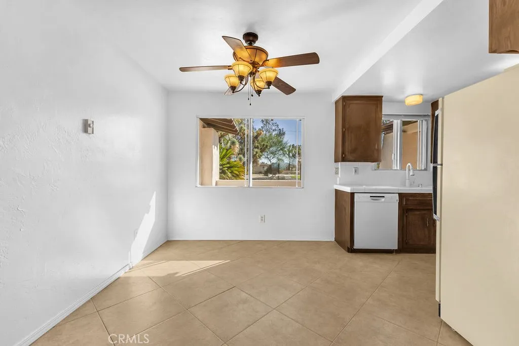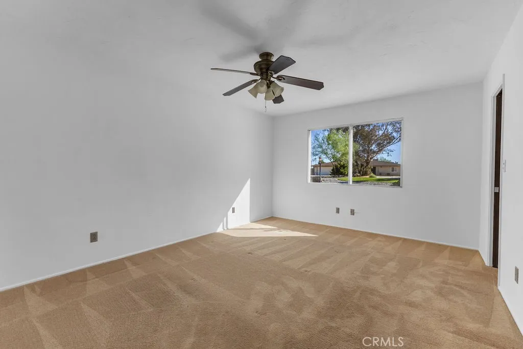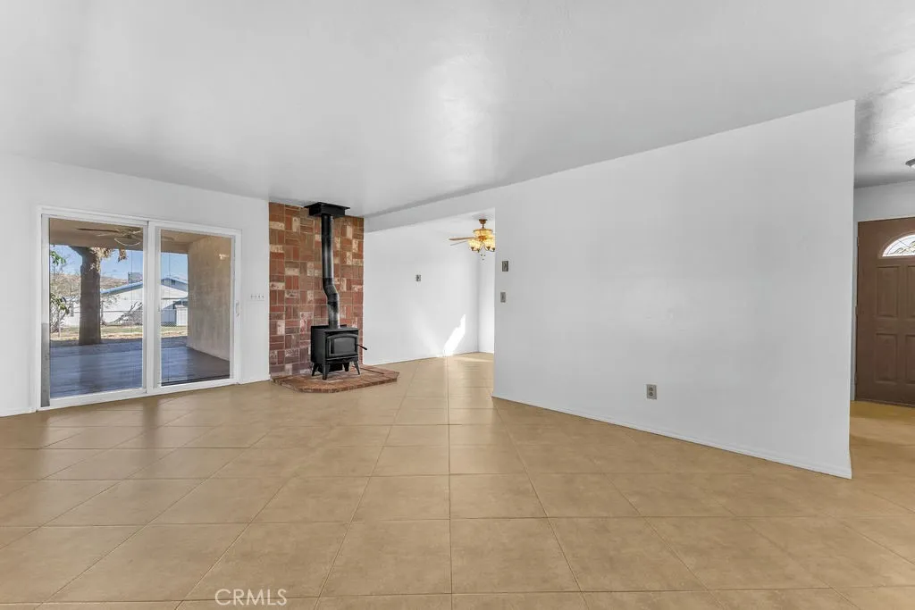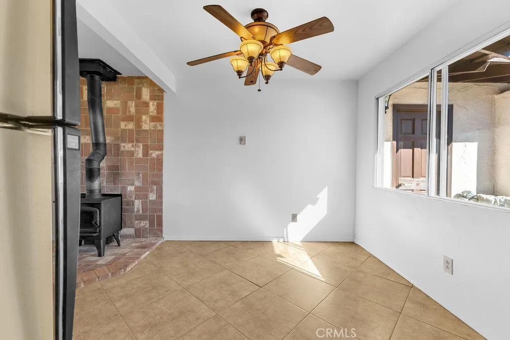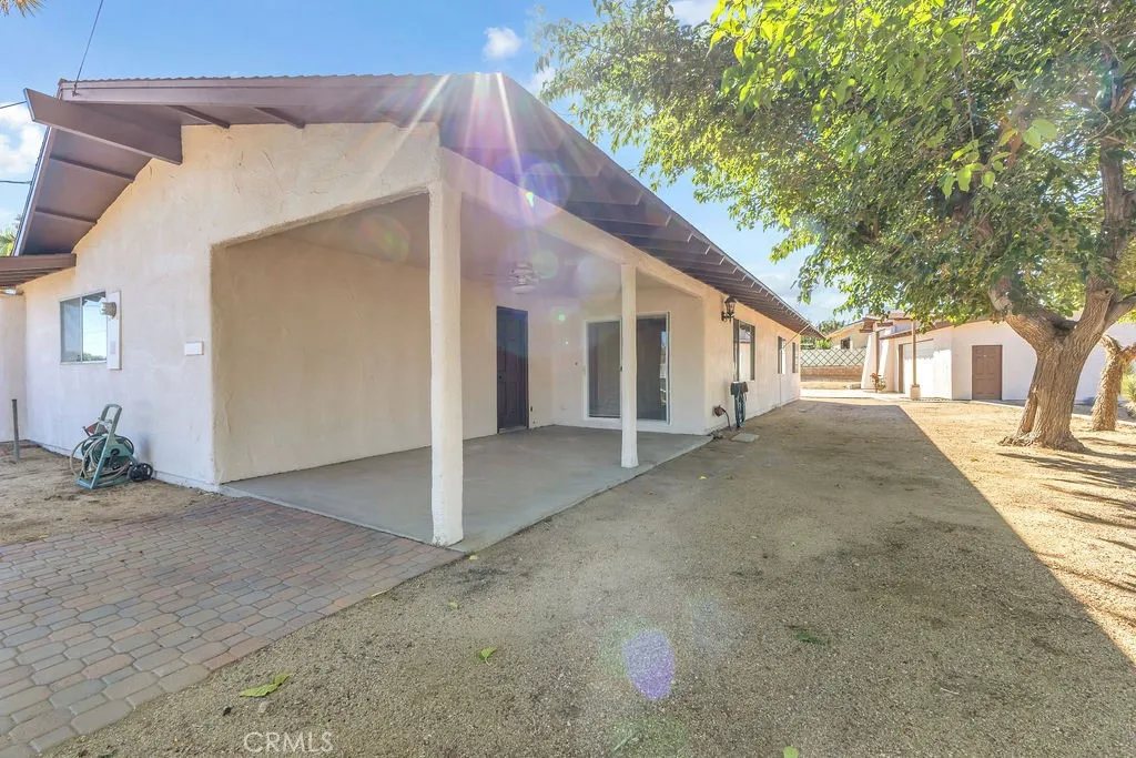 Welcome to 6938 La Habra Avenue in Yucca Valley, a beautifully updated three-bedroom, two-bathroom home offering both comfort and versatility. This property features fresh exterior paint with a lifetime transferable warranty, and is powered as an all-electric home with a solar lease at only $130 per month. The roof is in good condition and approximately five years old, while the newly landscaped front yard showcases clean desert rock for easy maintenance. A large circular driveway provides convenience, along with RV and trailer parking. In addition to the attached two-car garage, there is an impressive detached three-car garage/shop of approximately 1,200 square feet (40x30) that includes an office and bathroom, and is tall enough to accommodate a small RV. Inside, the home has new interior paint throughout, radiant ceiling heat, and a wood-burning stove for cozy desert nights. The primary bedroom features a walk-in closet, carpet that has been professionally steam-cleaned, and a private bath with a stand-up shower. The additional bedrooms offer ceiling fans, tile flooring, and ample space. The kitchen, while in original condition, is exceptionally well-kept and functional. Other property features include dual storm windows, a covered front porch, a rear covered patio, a shed, mature shade trees including fruitless mulberry trees, and enormous epic Joshua Trees. There are laundry hookups for either propane or electric dryers. This home is well-located near shopping, dining, and public transportation, and sits just minutes from Joshua Tree National Park, offering endless hik