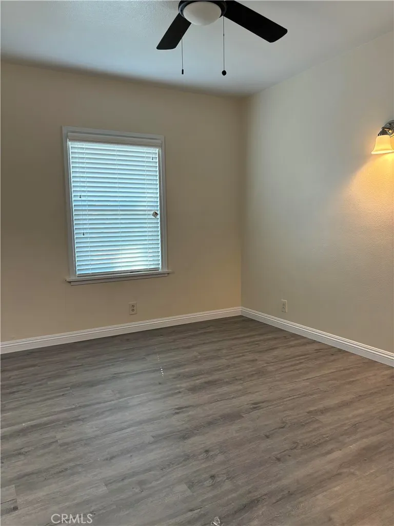 This property is move in ready with close to 30K in renovations both inside and out. It is also ADU ready and sellers are including the approved plans and permits for a 2 bedroom 1 bath as part of the sale of the property. It is be a great investment property after ADU is completed. The property is located on a quiet tree lined neighborhood and is conveniently close to shopping and other commercial establishments. The unit is a fully renovated 2 bedroom 1 bath with new vinyl plank floors throughout. New paint and ceiling fans and window covering are installed in the living room. From the living room, there is a short hallway to where the 2 spacious bedrooms are located with new vinyl plank floors, ceiling fans and window covers. The shared bathroom is tiled and comes with a new vanity and sink. The living room also leads to a spacious kitchen and dining area where new cabinetry and quatrz counters have been installed. There is also a newer stove and oven combo that has been recently installed. The kitchen and dining has a door that accesses the backyard with a covered patio where the washer and dryer hookups are located. Stucco repairs and repainting of the exterior have also been completed on this property. The property is gated and has a driveway that can accomodate several vehicles. The garage is unusable at this time but is where the proposed 2 bedroom 1 bath ADU is planned for construction.