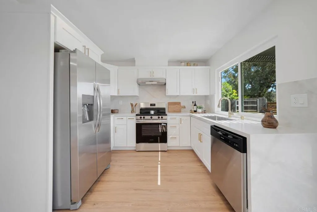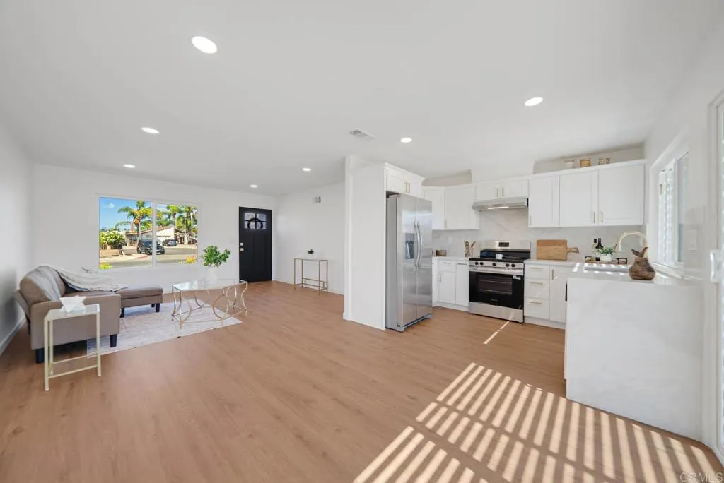 Welcome to your fully renovated dream home in the heart of San Diegos 92114! This beautifully updated residence combines modern design with lasting quality, featuring a brand-new roof, stylish exterior paint, and fresh landscaping with drought-tolerant plants and decorative rock for easy maintenance. The new entry and sliding doors, updated garage system, and fresh modern color palette give this home incredible curb appeal from the moment you arrive. Step inside to discover a complete interior transformation designed for comfort and efficiency. A brand-new HVAC system with all-new ductwork and a smart thermostat keeps the home comfortable year-round, while smooth skip-trowel walls, new flooring, modern baseboards, and energy-efficient double-pane windows create a bright, welcoming atmosphere throughout. Every detail from new interior doors and trim to retextured walls and recessed LED lighting has been carefully crafted to deliver both style and function. The kitchen and bathrooms are showstoppers, blending modern finishes with timeless design. The kitchen features brand-new cabinetry, sleek quartz countertops, and a full suite of stainless steel, energy-efficient appliances. Both bathrooms have been completely remodeled the primary showcasing elegant tilework and spa-inspired finishes, while the secondary offers fresh new fixtures and a clean, contemporary look. Every space has been designed to elevate daily living. Enjoy outdoor living at its best with a spacious backyard offering open views, new fencing, and plenty of room to relax or entertain. Additional updates inc