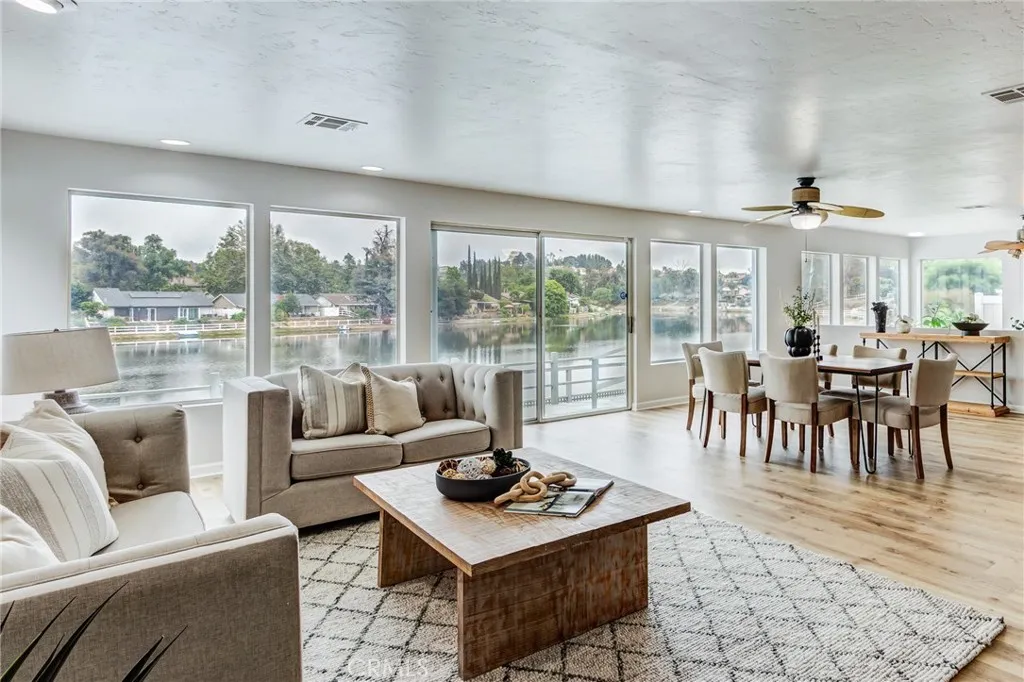 What if your living room had a lake view so good it felt a little smug about it? Yeah thats this house. Set in Lake Village, this Temecula waterfront home sits so close to the water it feels like the lake is on the guest list. Nearly 3,300 sq ft gives you 3 bedrooms, 3.5 baths, and plenty of room to host, unwind, and pretend youre on vacation full-time. Upstairs, the primary suite delivers big lake views, a walk-in closet, en suite bath, and a bright sunroom perched right above the water. One more en suite bedroom shares the view, and the third sits near a full hall bathno complaints here. Outside, the multi-level deck is where mornings start with coffee, evenings end with wine, and the 4th of July fireworks reflect across the lake. Low HOA ($110/mo), leased solar (~$188/mo), low taxes (~1.03%), plus pool, tennis, and fishingminutes from Old Town, Wine Country, and the freeway. Lakefront like this doesnt stay available for long come see it before someone else claims the view.