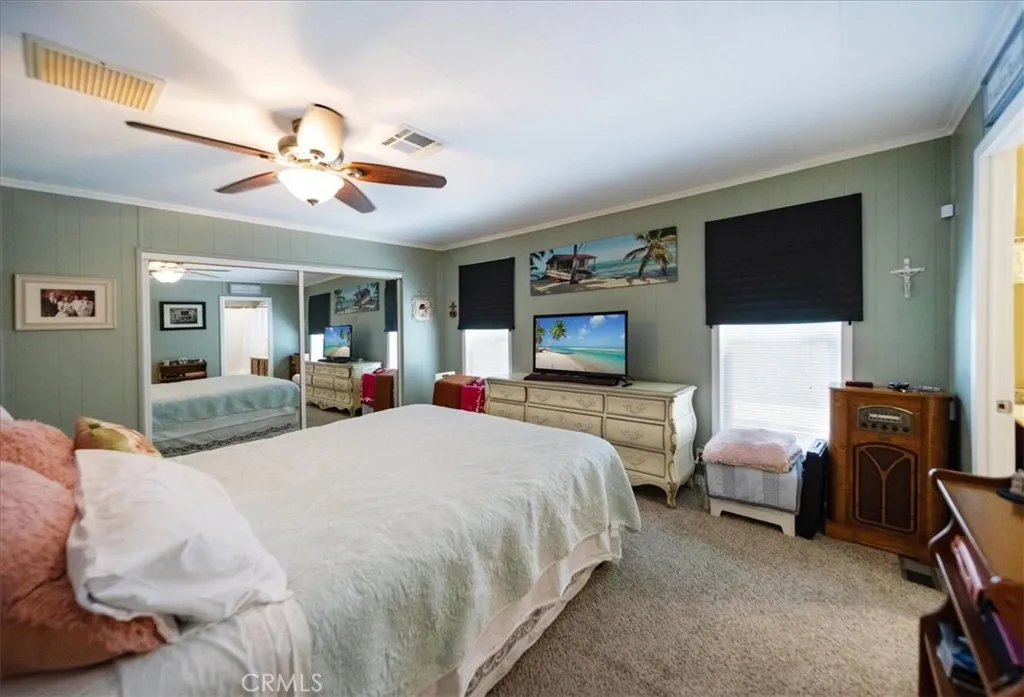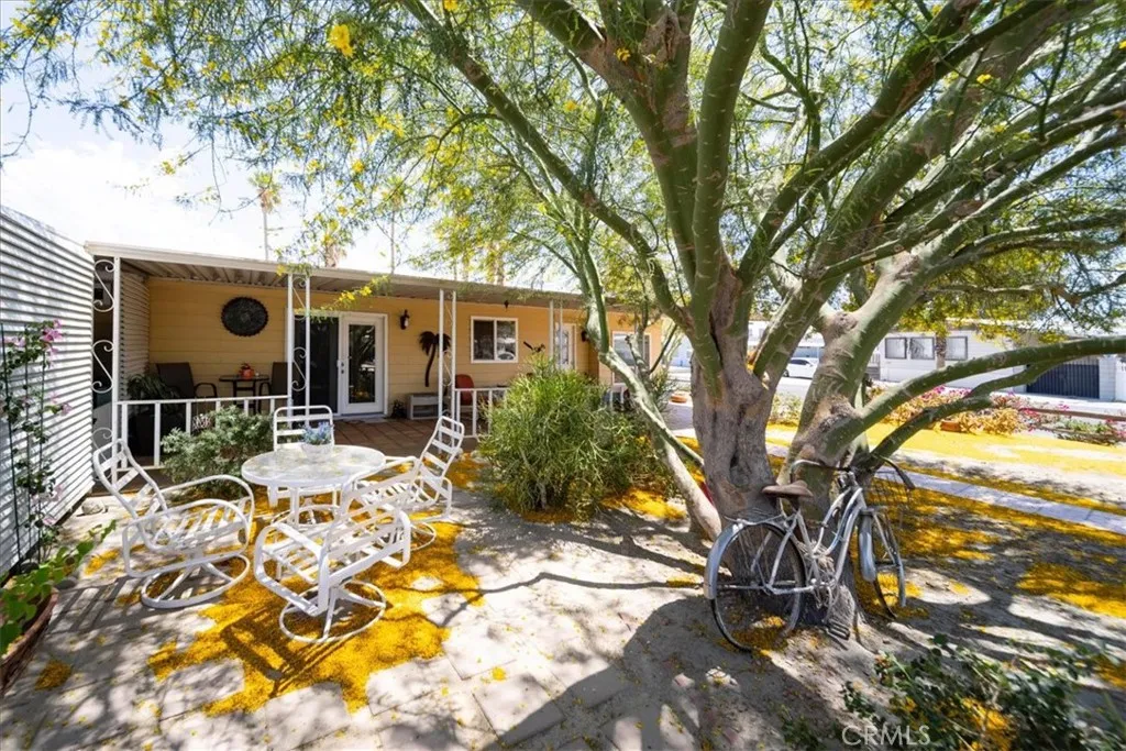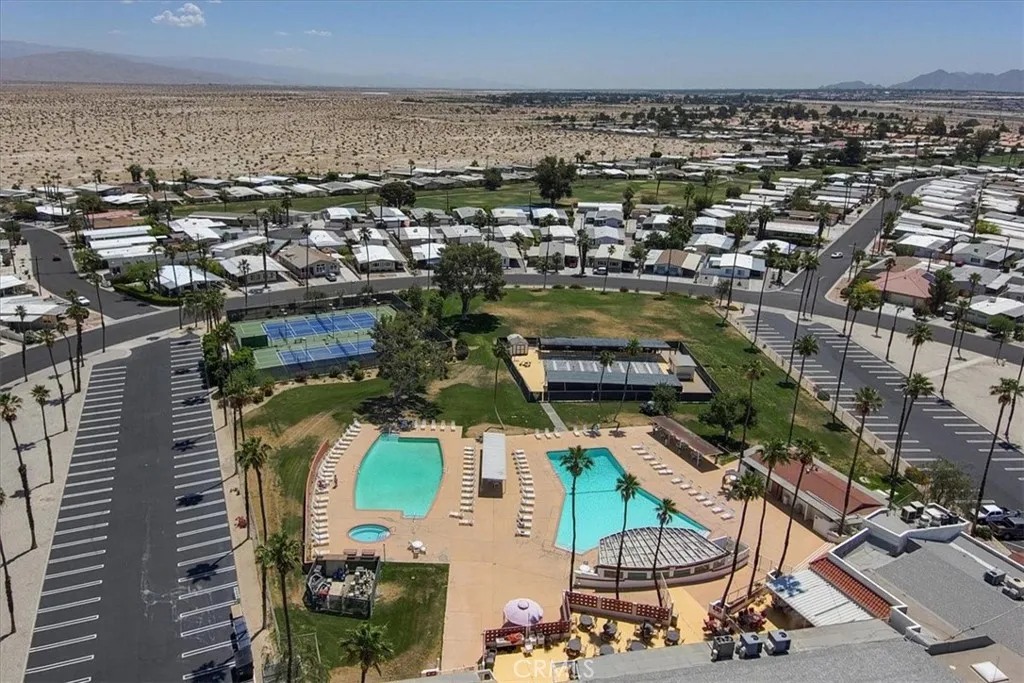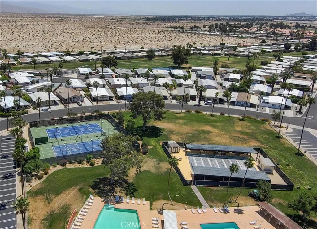 You own the land with this quality, Turnkey, home! It boasts a Spanish Tile Front Patio, that carries on into the front door entry way. Or enter in through a set of wide French Doors conveniently located just near the kitchen. The Kitchen, with its Under Cabinet Lighting and Recessed Lighting provides for a spacious open floor concept - perfect for entertaining. When relaxing in the Family Room, the oversized windows provide for an abundance of natural sunlight, and the home will stay cool with Ceiling Fans installed throughout. The home offers two very spacious bedrooms, while the Master Bathroom provides a Dual Sink Vanity. Your new home includes Free Golf for 2 residents, Pools, Hot Tubs, Tennis, Pickle Ball, and a Club House all included in the HOA. The property comes fully furnished as is.