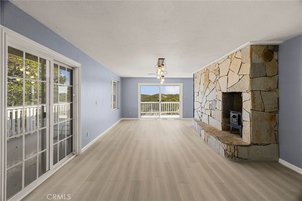 Beautiful 4 bedroom 3 1/2 bath on 5 AC LOTS. House has 3 Bedrooms and 2 1/2 Baths on main entry level, and a 1 Bedroom, 1 Bath Apartment down stairs with access from outside, or from interior stairway, that can be locked off for privacy. Downstairs unit with full kitchen and large Bedroom, could be Grannie unit, play room, kids apartment, lots of possibilities. Large shop with separate septic system, great for RV. House has large deck, overlooking rolling hills, and beautiful Trees. Master Bath has jetted tub. Living room has fireplace with hatinator, wood stove in kitchen, dining. Downstairs has Livingroom with Woodstove, and private patio.