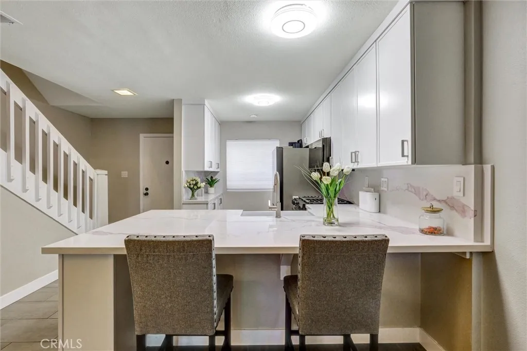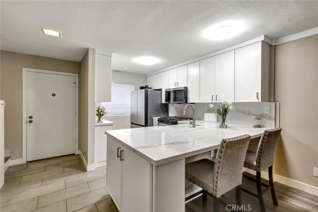 Fully Remodeled Luxury Condo | Premium Appliances | 2 Assigned Parking Spaces Welcome to this completely remodeled, move-in-ready condo in one of Whittiers most desirable gated communities! Surrounded by tranquil ponds, flowing streams, and lush landscaping, this home offers a rare blend of modern comfort and resort-style living. Step inside and youll immediately notice the attention to detail and quality craftsmanship throughout. The home has been redesigned from top to bottom. The chefs kitchen is a true highlight, boasting brand-new custom-made cabinetry built locally, new countertops, new range, and high-end stainless-steel appliances. Every finish has been carefully selected to create a clean look that feels both stylish and functional. Upstairs, both bedrooms feature high ceilings and abundant natural light, creating an airy, open feel. The bathrooms has been tastefully updated with new vanities, mirrors, and modern fixtures, offering both elegance and practicality. The home includes a dedicated laundry room complete with a brand-new Samsung Bespoke washer/dryer combo unit, providing cutting-edge efficiency and design. Other thoughtful updates include a new front security door and custom touches throughout that elevate the space beyond anything else currently on the market in this community. One of the standout features of this property is the two assigned parking spaces and optional 3rd space a true rarity here along with ample guest parking conveniently located. Residents also enjoy access to the community pool, spa, tennis courts, and beautifully maintained walki