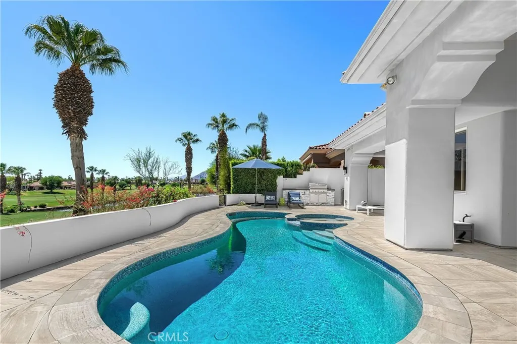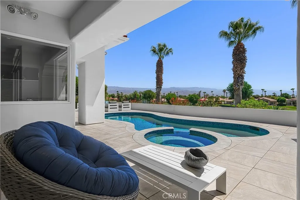 YOU HAVE TO SEE THIS REMODELED GEM!! Welcome to this light, bright and recently remodeled Ocotillo 2, at beautiful Indian Ridge Country Club. This 4-bedroom home, including an attached casita, boasts an open-concept layout with panoramic mountain views, overlooking double fairways on hole 11 of the Arroyo Course. Each bedroom includes its own en-suite bath, creating privacy for family and guests. Enjoy quiet mornings watching the beautiful sunrise creep up over the mountains, casting a fire-like glow on the patio, redone with porcelain pavers, a sparkling salt water pool with newer pebble tec, a spa, and built-in BBQ. Wind down after a day of pickleball or golf by your modern firepit, perfect for relaxing evenings with a glass of wine or for entertaining guests. Inside youll find luxury vinyl plank flooring flowing seamlessly throughout the home, 6 modern baseboards, electric shades, and new recessed lighting. The floor to ceiling fireplace elevates the living room with a sense of modern luxury. The chefs kitchen is sure to impress, with a large center island, beautiful quartzite countertops, two sinks, Rohl faucets, a microwave drawer, sub-zero refrigerator, Wolf double ovens and a Wolf 6-burner stove (red knobs available)! Large walk-in pantry offers plenty of storage, and a full size Thermador wine refrigerator will showcase your favorite bottles of wine. The very spacious primary suite includes double opening shutters, a walk-in closet with a center island for shoe storage, and a spacious bathroom, with a large shower, two shower heads, two separate vanities, and a soak