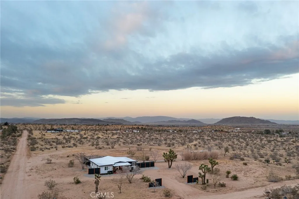 Flamingo Heights Hideaway: Set against the wide-open expanse of the Hi-Desert, this 1963 brick home blends midcentury character with thoughtful updates, creating a retreat that is both stylish and enduring. Featuring 3 bedrooms, 1 bath, and a bonus room for a studio, office, or even a coveted 4th bedroom, the layout invites creativity and flexibility. Recent improvements include high-end laminate wood flooring, a brand-new roof, and privacy fencingadding modern comfort to timeless desert charm. The property spans 5 acres with unobstructed views of Goat Mountain, buffered by 7.5 acres of adjacent government land to preserve your sweeping panoramas and ensure lasting privacy. An original homestead cabin rests quietly among bamboo groves, awaiting transformation into a Western bar, creative workshop, or meditative retreat. Outdoor living is defined by tranquil days and starlit nightsexperience breathtaking sunsets across the mesa, then watch the desert sky come alive with constellations, planets, and the shimmering Milky Way. Just minutes away, indulge in acclaimed farm-to-table dining at La Copine (5 minutes), world-class entertainment at Pioneertowns legendary Pappy & Harriets (15 minutes), and restorative sound baths at the Integratron (8 minutes). Adventure seekers can lose themselves among the boulders of Giant Rock or wander the trails of nearby Joshua Tree National Park, only 20 minutes away. Flamingo Heights Hideaway is more than a homeits a rare opportunity to live in harmony with nature while remaining close to the best of the Hi-Desert. A true desert dream, waiting