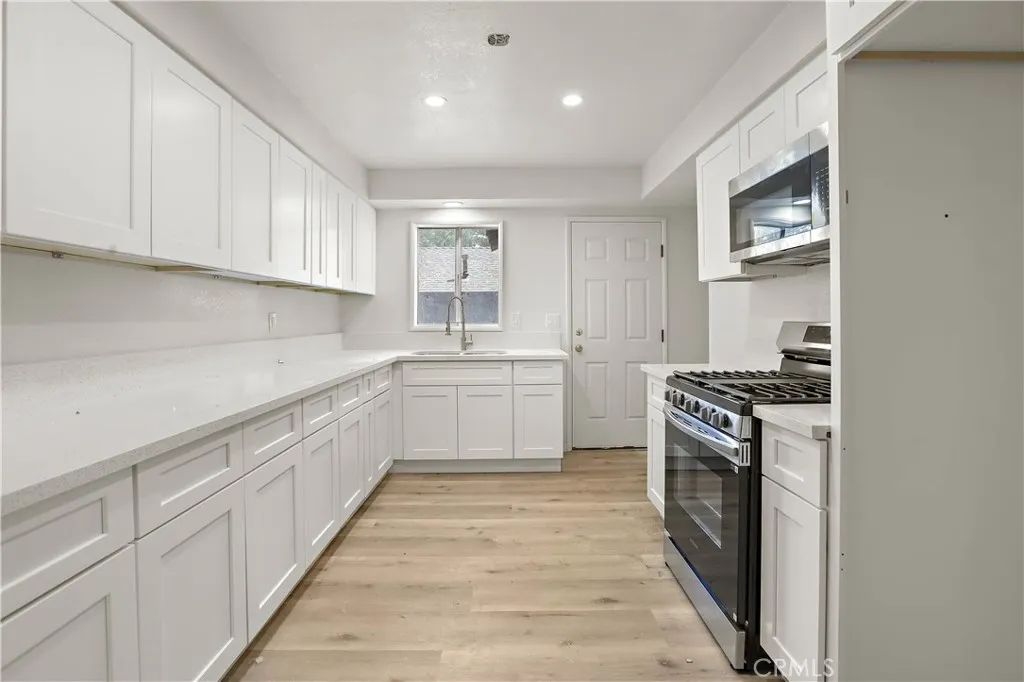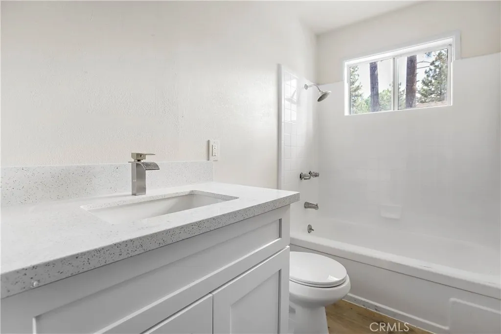 Step inside this beautiful mountain retreat that has been completely renovated. This 4 bedroom (1 bedroom has no closet) 2 bathroom home offers inviting living space with (NEW 2025) LVP flooring, (NEW 2025) windows, & a cozy fireplace perfect for this upcoming winter. (NEW 2025) drywall, paint, textured walls throughout the home. (NEW 2025) upgraded electrical fixtures, recessed lighting, & ceiling fans. As you enter through the kitchen you will find this redesigned cabin layout into a modern day living space with endless countertop space (white crystal quartz countertops), soft closing cabinets, & NEW 2025 appliances. As you walk down the hallway you will find 1 upgraded bathroom, 3 large bedrooms with one of the bedrooms offering en-suite bathroom. The 4th bedroom is located outside of the home with its separate entrance allowing the option to possibly rent the room out for extra income or possible office, craft, & or weight room. Located just 5 mins away from Big Bear Lake, shopping, & downtown life this home offers strategic mountain life living without the congested tourist on your front yard.
