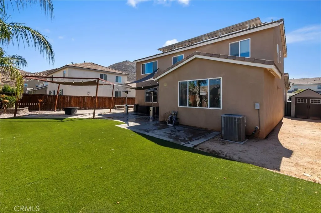 Welcome to 30100 Pine Needle Road, a beautifully maintained 2015-built home located in one of the safest and fastest-growing communities in California. This well-designed residence in a quiet, no-HOA neighborhood offers modern comfort and exceptional value, featuring expansive family and living room areas perfect for entertaining, plus a convenient first-floor bedroom ideal for guests or multi-generational living. The backyard showcases a generous patio space with sun shades for year-round outdoor enjoyment. Energy efficiency meets smart homeownership with a owned solar system PLUS battery backup, providing immediate savings on utility bills and peace of mind during outages. With its move-in ready condition, thoughtful layout, and sustainable features, this home offers the perfect blend of comfortable living and long-term value in a serene setting.