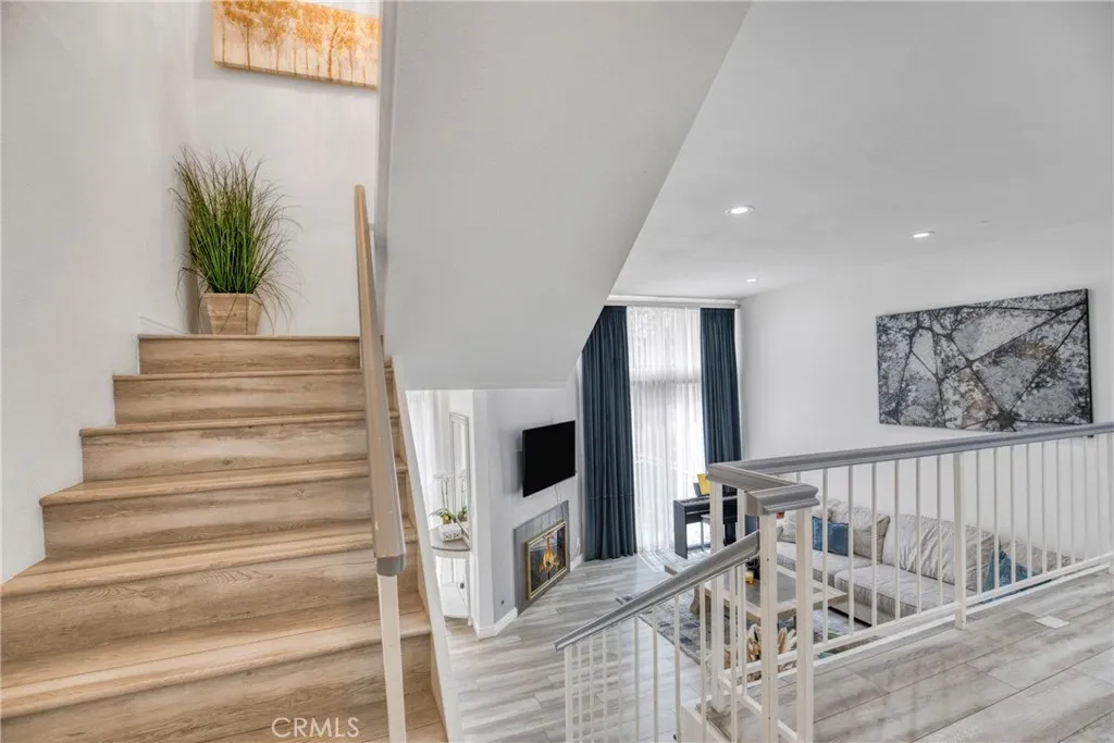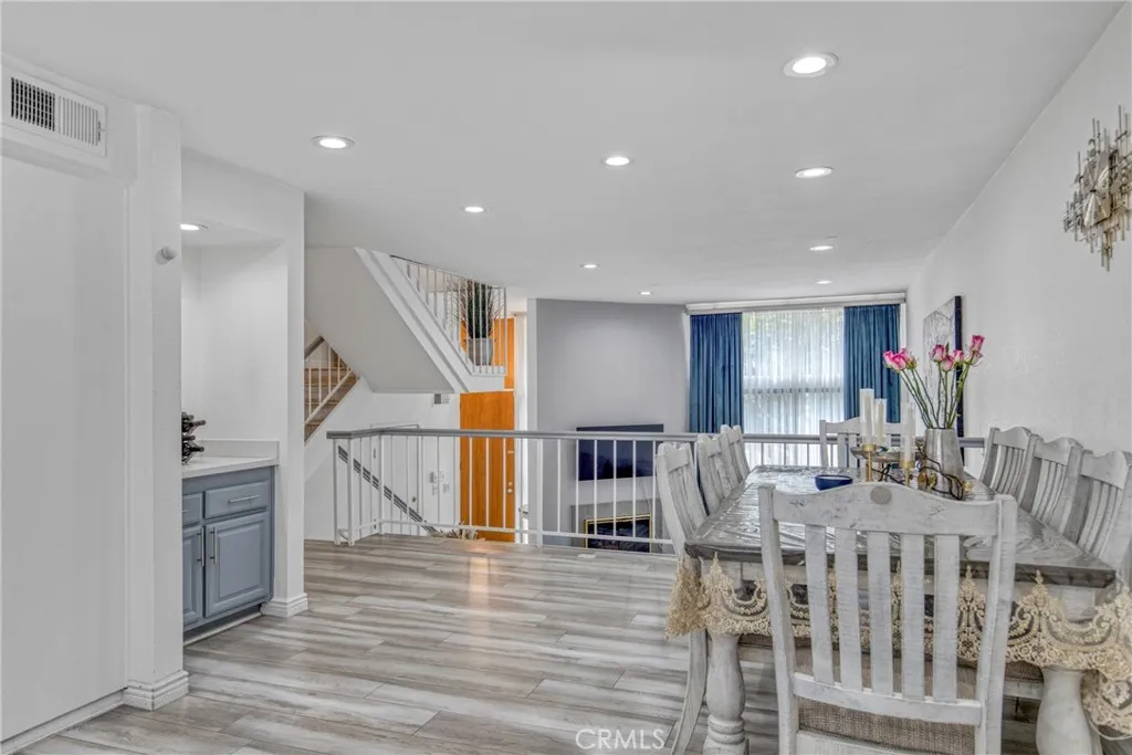 Welcome to this stunning tri-level townhome in the coveted Northbrook community, offering 2 bedrooms, 2.5 bathrooms. The living room impresses with floor-to-ceiling windows, recessed lighting, and laminate flooring, all overlooking lush greenbelt views. A private patio. The beautifully remodeled kitchen boasts Quartz countertops, stainless steel appliances, ample cabinetry, and an upgraded wet bar. The formal dining area provides plenty of seating, with a nearby powder room for guests. Upstairs, the spacious primary suite features a walk-in closet, recessed lighting. The second bedroom includes its own private bath. The attached two-car garage offers direct access, storage cabinets, laundry hookups, The HOA includes water and sewer, earthquake insurance, 24-hr security. This unit includes a spacious two-car garage with direct access to the home. Residents have access to a large swimming pool, tennis court, and peaceful water streams running throughout the area.