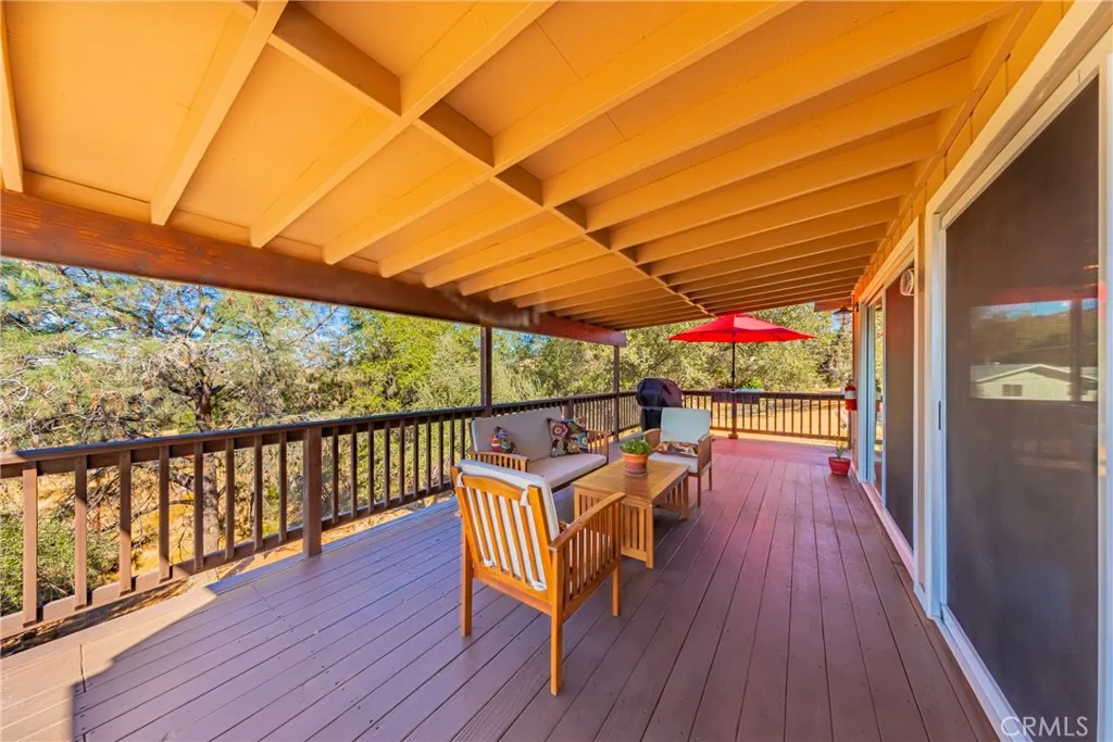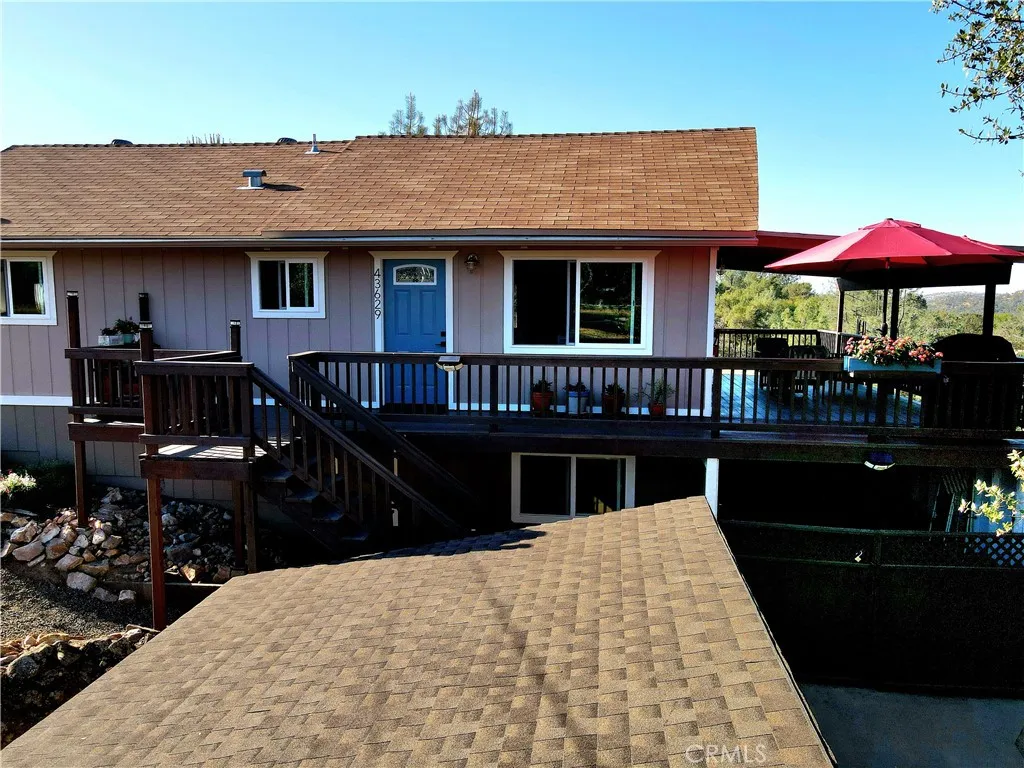 Discover charm and comfort in this beautifully updated 2-bedroom, 1-bath, cabin style home in Yosemite Lakes Park. Set on a well-manicured 1.02 acres, this property offers peaceful living with modern style. Inside, the fully remodeled kitchen and bath shine with fresh finishes, while the bedrooms have been tastefully updated. A versatile bonus room downstairs complete with laundry can serve as an office, studio, or anything you imagine. Step out to the wraparound deck (covering about 50% of the perimeter) and enjoy breathtaking views of the rolling foothills. Outside, you'll find a fenced garden, low-maintenance landscaping, a 1-car detached garage, plus a 1-car enclosed carport with a gate for extra security. Yosemite Lakes Park residents enjoy fantastic amenities, including a golf course, swimming pool and hot tub, tennis courts, clubhouse, restaurants, equestrian center, and scenic walking trails. With too many upgrades to list, this home blends modern updates with serene country living just a short drive from Yosemite National Park and Fresno.