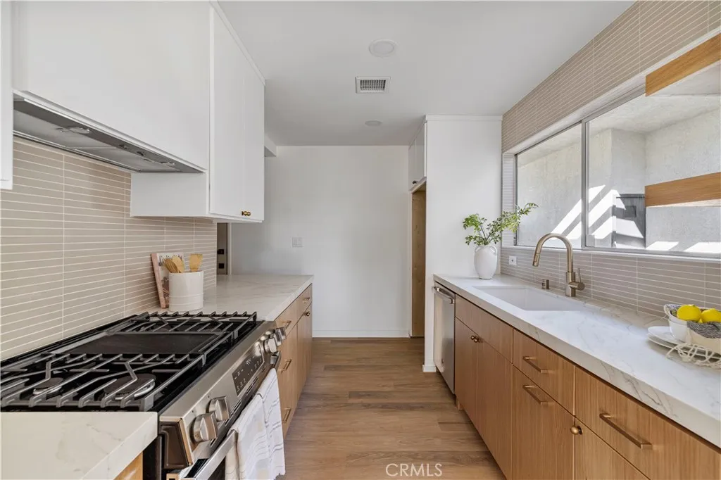 Stunning Mid-Century Modern Home in Highly Sought-After North Granada Hills Welcome to 12648 Darla Ave, a rare, fully reimagined 4-bedroom, 2-bathroom mid-century modern masterpiece offering luxurious living in one of the Valleys most desirable neighborhoods. Step inside to discover a bright, open floor plan featuring a stylish living room with a floor-to-ceiling fireplace, elegant luxury vinyl flooring throughout, and large custom windows that fill the home with abundant natural light. The spacious family and dining rooms boast high vaulted ceilings, modern light fixtures, and a charming brick fireplacecreating the perfect setting for entertaining or relaxing in style. The brand-new custom galley kitchen is a chefs dream, showcasing high-end stainless steel appliances, quartz countertops, ample custom cabinetry, and a large walk-in pantry for added convenience. Adjacent to the kitchen, a dedicated laundry area offers additional storage and a new side-by-side washer and dryer set. The inviting family room overlooks the beautifully landscaped backyard, ideal for gatherings, lounging, and taking in exquisite valley views. Off the kitchen, a potential fifth bedroom offers flexibility for guests, a home office, gym, or additional living space. Each of the four main bedrooms is generously sized with large closets, while the primary suite serves as a relaxing retreat with a sliding glass door leading to the backyard, allowing for easy access and abundant sunlight. Both bathrooms have been meticulously remodeled with designer finishes. Every detail of this home has been thoughtful