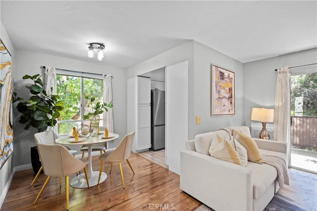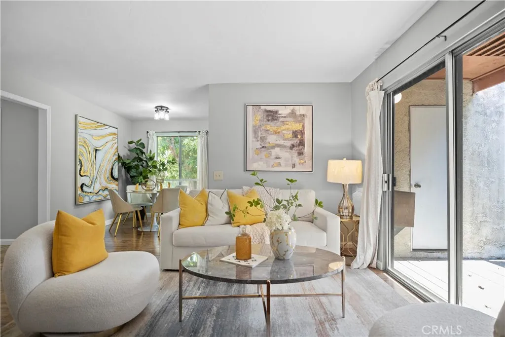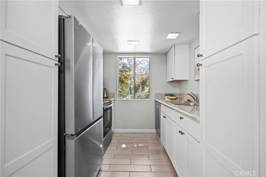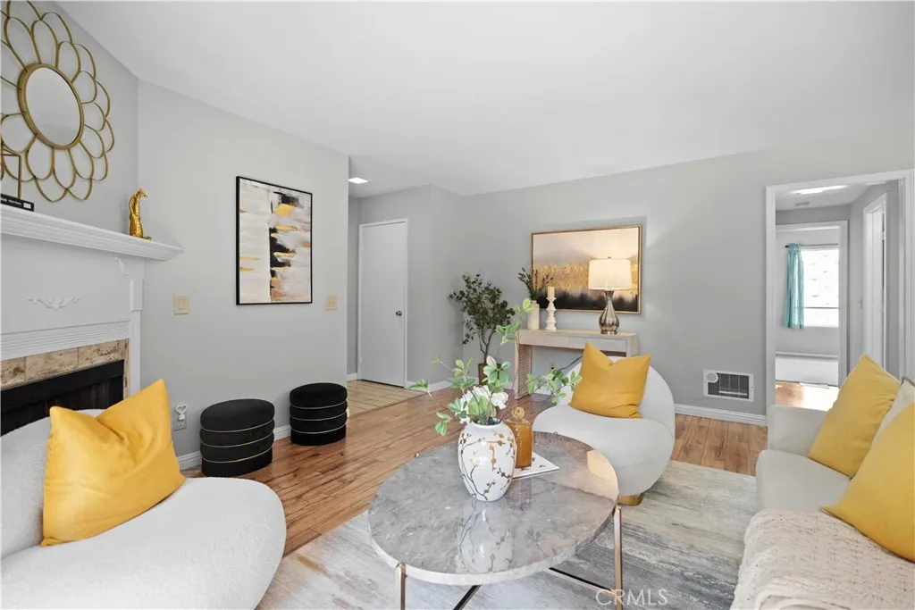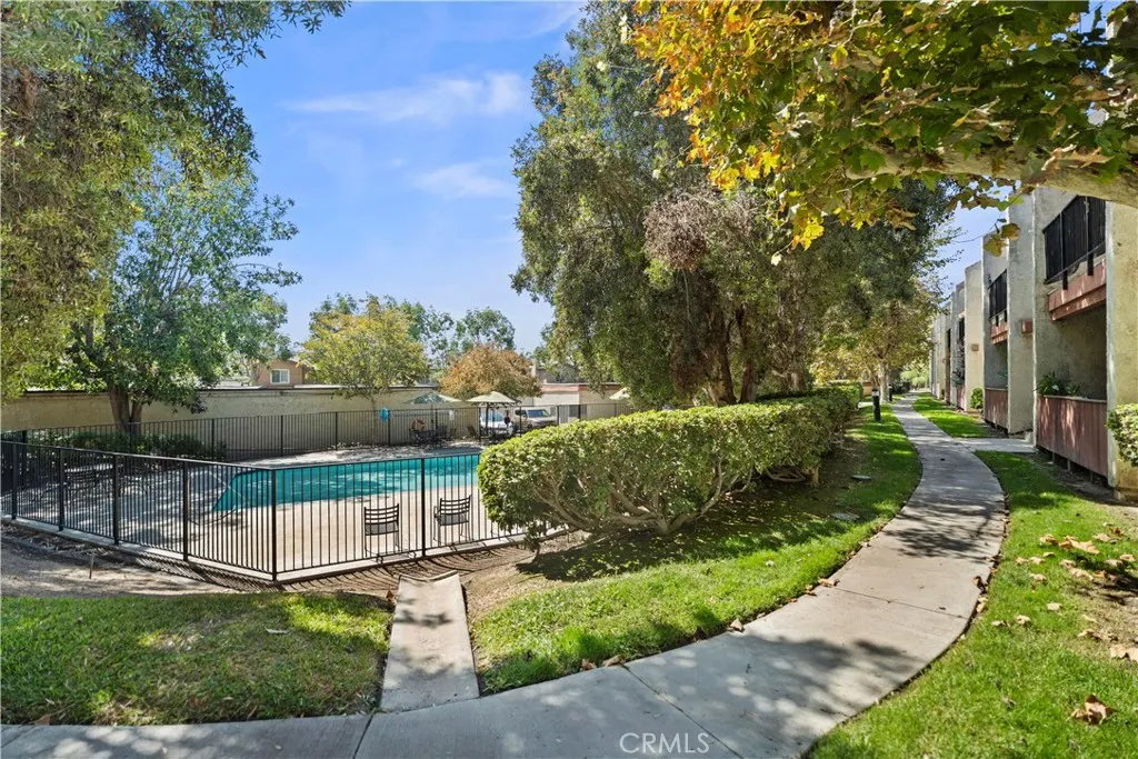 Move-in ready 2-bedroom, 2-bathroom upper-level end-unit condo in the gated community of Fashion Heights, La Habra. This beautifully upgraded unit features a slate-tiled entry, cozy living room with built-in gas fireplace, and a private patio with pool viewsperfect for BBQs and extra storage. The spacious master suite offers ample closet space and a private bathroom. The HOA covers water, trash, and gas, so the owner only pays for electricity. Conveniently located within walking distance to shopping centers, restaurants, grocery stores, Walmart, Lowes, Sams Club, LA Fitness, a movie theater, and more. Includes a 2-car detached garage. A quiet, well-maintained community ideal for comfortable living.
