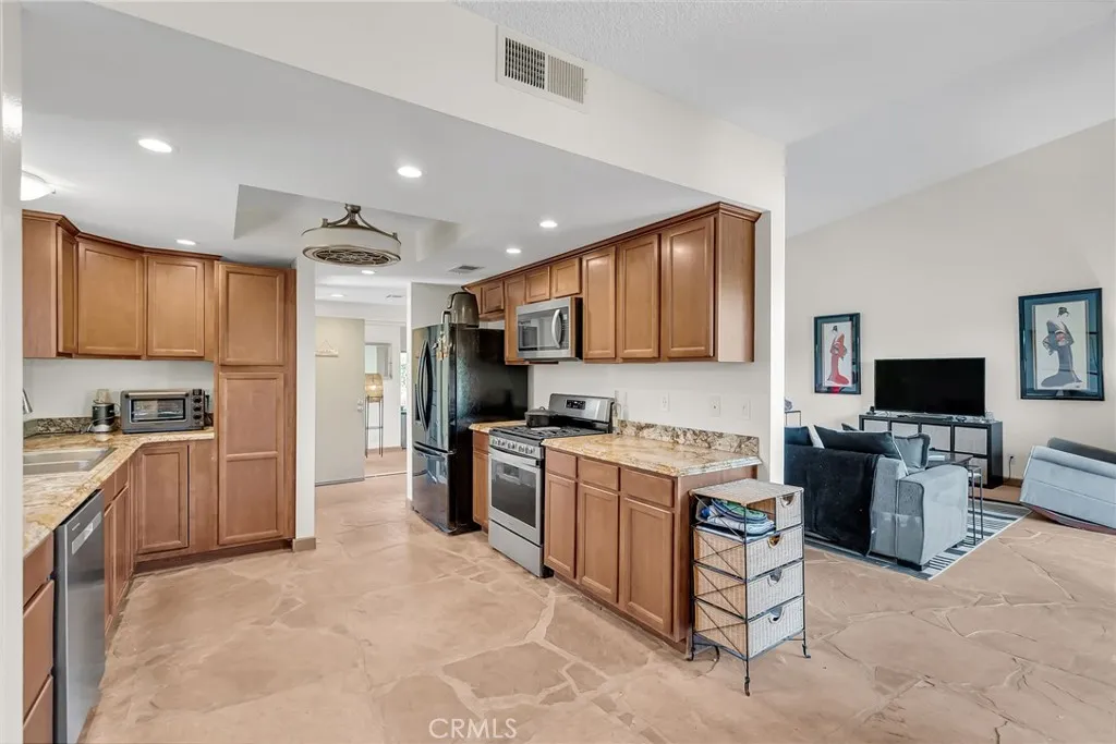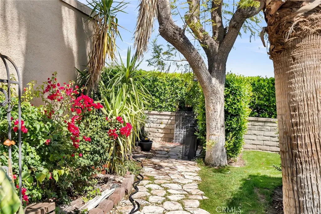 Welcome to the Rose Garden in Downtown Palm Springs! This 3 bedroom, 2 bathroom condominium on FEE LAND is centrally located on the North side of the community. The unit has a private entry way. Upon entering the natural light from the atrium brightens the entire home. The large living room provides ample space for guests or for comfort. The kitchen includes new dishwasher, stone counter tops, and plenty of cabinetry for storage. Leaving the kitchen you enter the dining room. Views of the mountains through the multiple glass sliding doors are simply amazing! Enjoy those peaceful desert nights while you relax in your private back patio. Stone floors throughout the home and even lead through the back patio as well. The guest bedrooms are great sized with one also leading to the central atrium. The primary suite also provides beautiful views. The Rose Garden offers a community pool directly across from this unit. Close by is also multiple pickleball courts. Just minutes from Palm Canyon, this community truly exemplifies the Palm Springs Lifestyle.