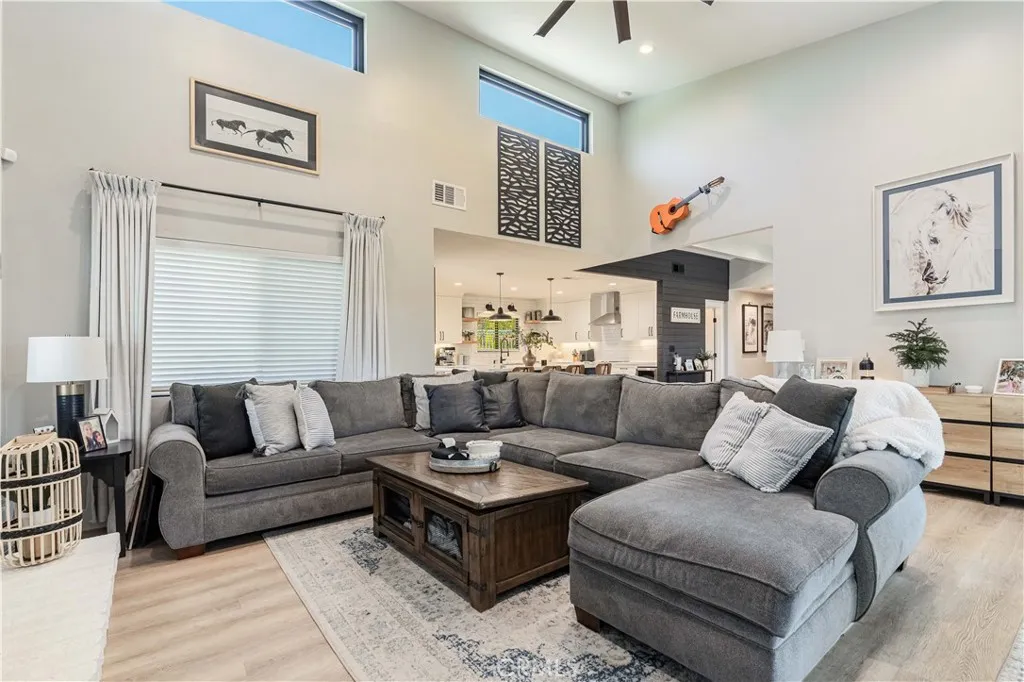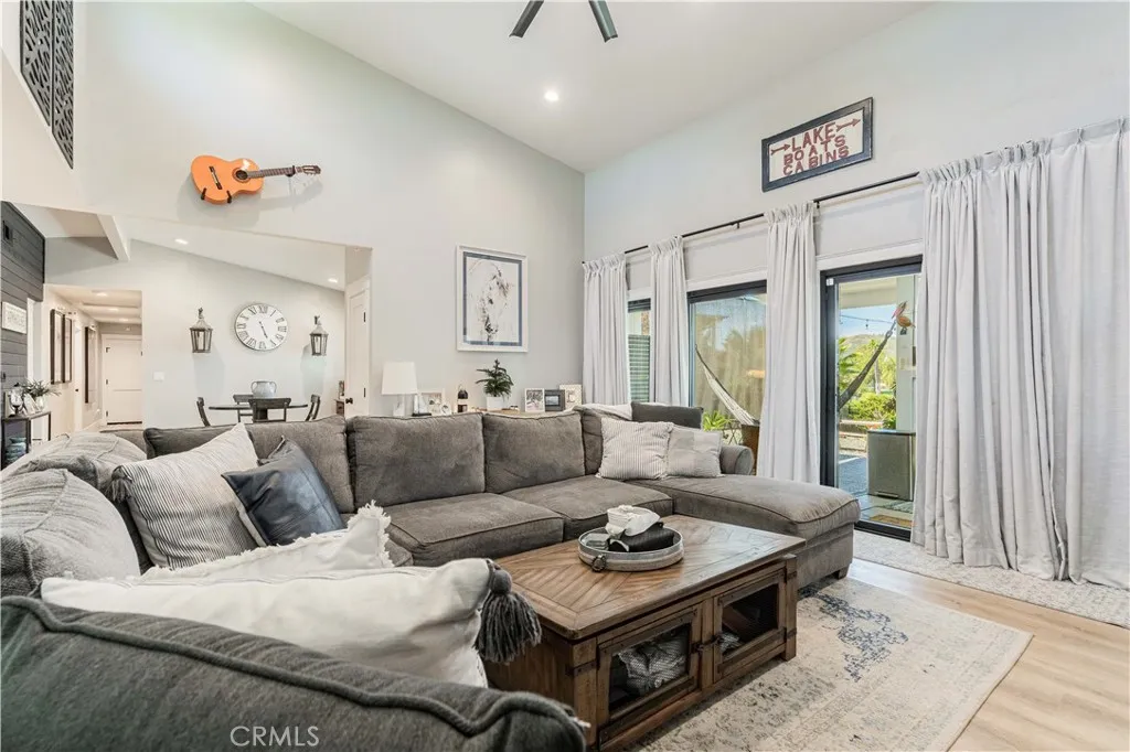 SINGLE story ranch home on the GOLF course with amazing sunset VIEWS almost every single night and a huge, flat POOL SIZED lot with RV potential! Welcome to this exceptionally remodeled 3 bed, 2 bath home featuring a one of a kind detached office/she-shed. This lovely home sits on a sprawling 1/3 of an acre of usable land and is nestled right on the green of the 4th hole of theCanyon Lake Golf Course. With 1,448 square feet of thoughtfully designed living space, this home blends comfort, style and functionality in a prime location. Step inside to anopen floor planwithvaulted ceilingsand an abundance of natural light through all new windows and doors. Thegreat roomflows seamlessly into a stunningmodern kitchen, where you'll find a spacious quartz island with counter seating, new beautiful backsplash,custom soft-close cabinetry,stainless steel appliances, afarmhouse sink, updated lighting, wine fridge and amicrowave tucked into the island perfect for entertaining or throwing together some amazing meals with the family. Relax in the cozy living area featuring anelegant fireplace with a custom mantle, vaulted ceilings, lots of windows with great lighting and two huge sliders that look out over your massive backyard, the greenery of the golf course and the mountains beyond. This home showcases fully remodeled bathrooms including a spa-like master bath with aglass-enclosed shower, custom tile work, marble vanity, updated fixtures, new lighting and a sleek barn door for privacy. Additional upgrades includenew windows, new doors, new roof, new casing, new trim and fresh paint. The