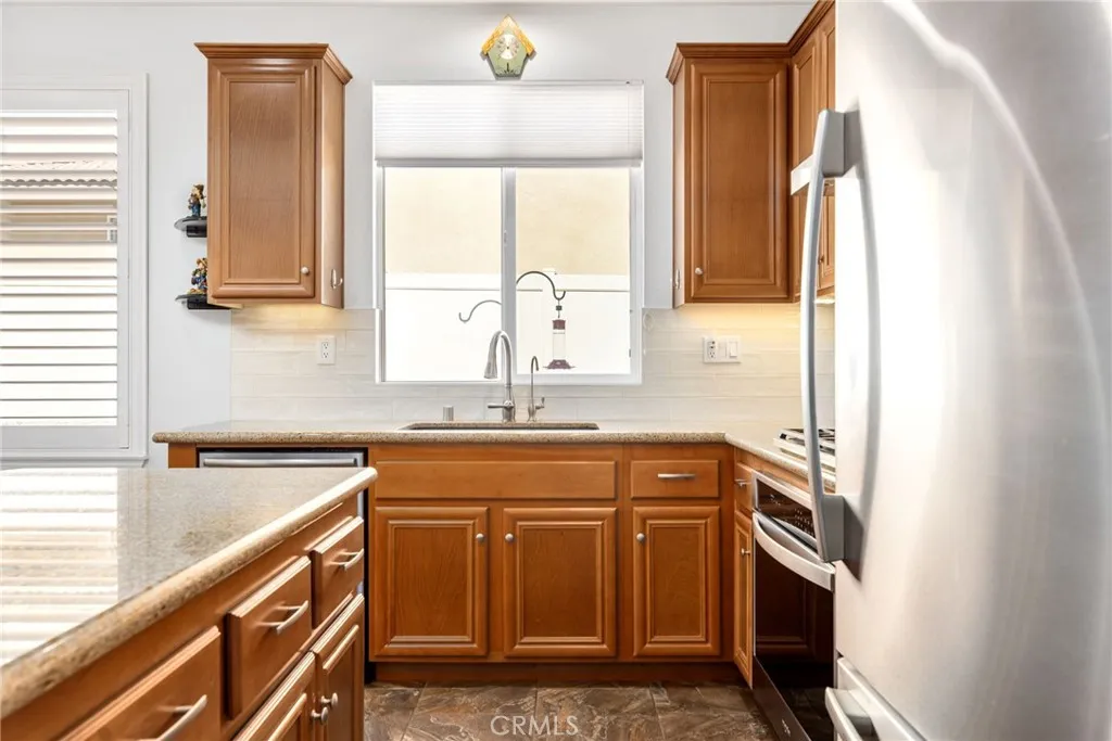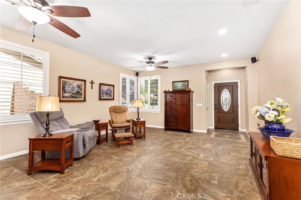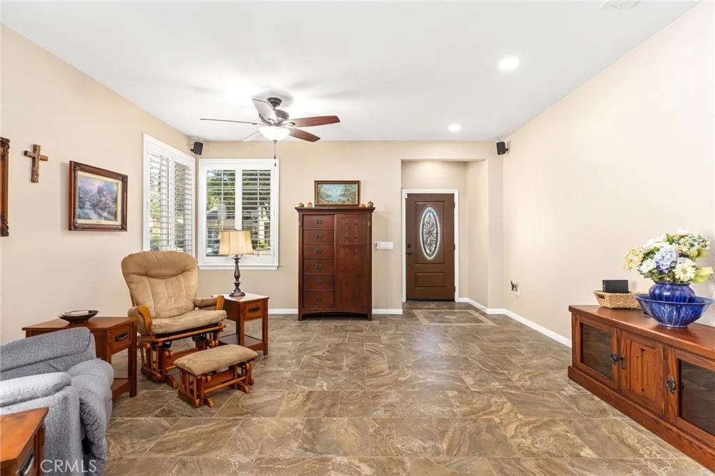 Views, privacy, perfection! This single-story Van Daele home checks every box. Tucked away on a quiet cul-de-sac with only one neighbor, this rare property sits on a premium, flat lot designed for both privacy and views. Imagine morning coffee and sunset views! Inside, style meets comfort. The completely remodeled primary bathroom is a true showpiece with a glass-tiled shower, soaking tub with armrests, dual sinks, and custom mirrors. Italian porcelain tile runs through the high-traffic areas, and with 9-foot ceilings, recessed lighting, and a spacious open layout, the home feels airy, bright, and endlessly inviting. The great room features a stacked travertine fireplace and opens seamlessly to the chefs kitchen, equipped with granite counters, subway tile backsplash, rich chestnut cabinetry, and premium stainless appliances, including a Wolf gas range, Bosch silent dishwasher, Samsung microwave, and a reverse osmosis water system for purified drinking water. Outdoors, the landscaping is beautifully drought-tolerant in both front and back, accented by vinyl and wrought-iron fencing that frame serene hillside and park views. Relax under the redwood and pinewood pergola, or enjoy direct access to the walking trail, basketball courts, and playground just beyond your backyard. Add in large side yards, a Quiet Cool system, ceiling fans throughout, and this property offers the perfect blend of efficiency, style, and livability. This isnt just a house, its the one. Schedule your tour and experience the lifestyle youve been waiting for.