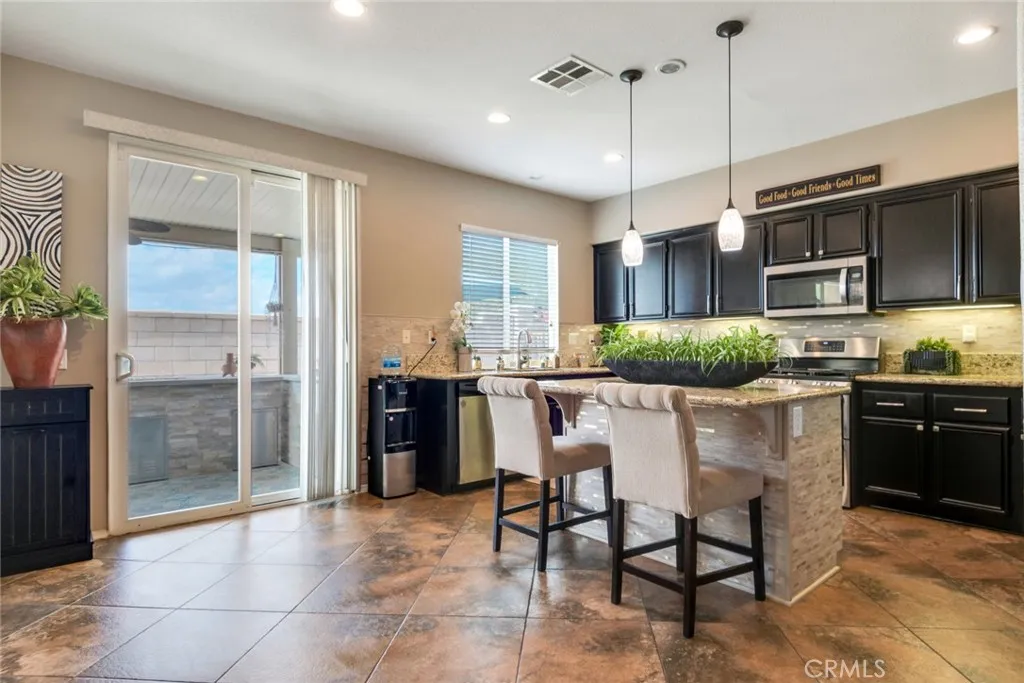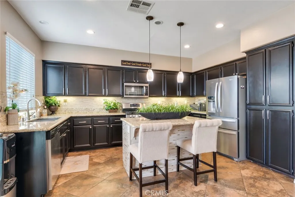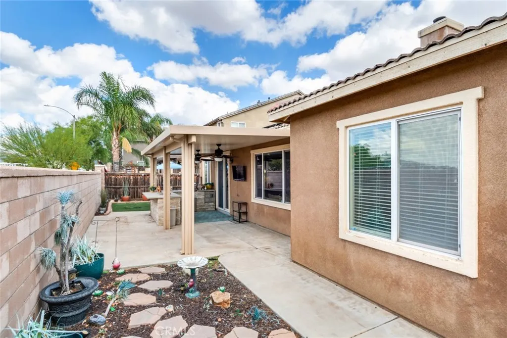 Stunning 5-Bedroom Home Near Perris Lake with Paid-Off Solar & Outdoor Entertainers Dream! Welcome to this beautifully upgraded 5-bedroom, 3-bathroom single-family home. This home shows like a model home with tons of upgrade. The seller has invested close to 60k in Remodel upgrades. This home is ideally located in a sought-after neighborhood just minutes from Moreno Ranch Golf Club, less than a mile from Perris Lake, and directly across from Riverside University Health System Hospital. Step into a thoughtfully designed floor plan that seamlessly blends modern luxury with everyday comfort. The spacious master suite is a true retreat, featuring a CUSTOM walk-in closet and a spa-like en-suite bathroom with a jacuzzi tub, separate glass-enclosed shower, and dual vanities. Highlights of the home include: Gourmet Kitchen: Granite countertops, a large center island, and ample cabinetry make this space perfect for both everyday meals and entertaining. Versatile Bonus Room: Can easily function as a 5th bedroom, home office, or media room. Custom Finishes: Stylish barn doors and tile flooring throughout elevate the interior design. Enjoy year-round energy savings with the fully paid-off 22-panel solar system, and take full advantage of Californias indoor-outdoor lifestyle with a backyard built for entertaining. The outdoor kitchen features a built-in BBQ with custom design, beverage cooler, abundant storage and a patio cover. Additional amenities include: Three-Car Tandem Garage: Ideal for storage, a workshop, or additional vehicles. RV/Boat Parking: Convenient, secure parking for yo