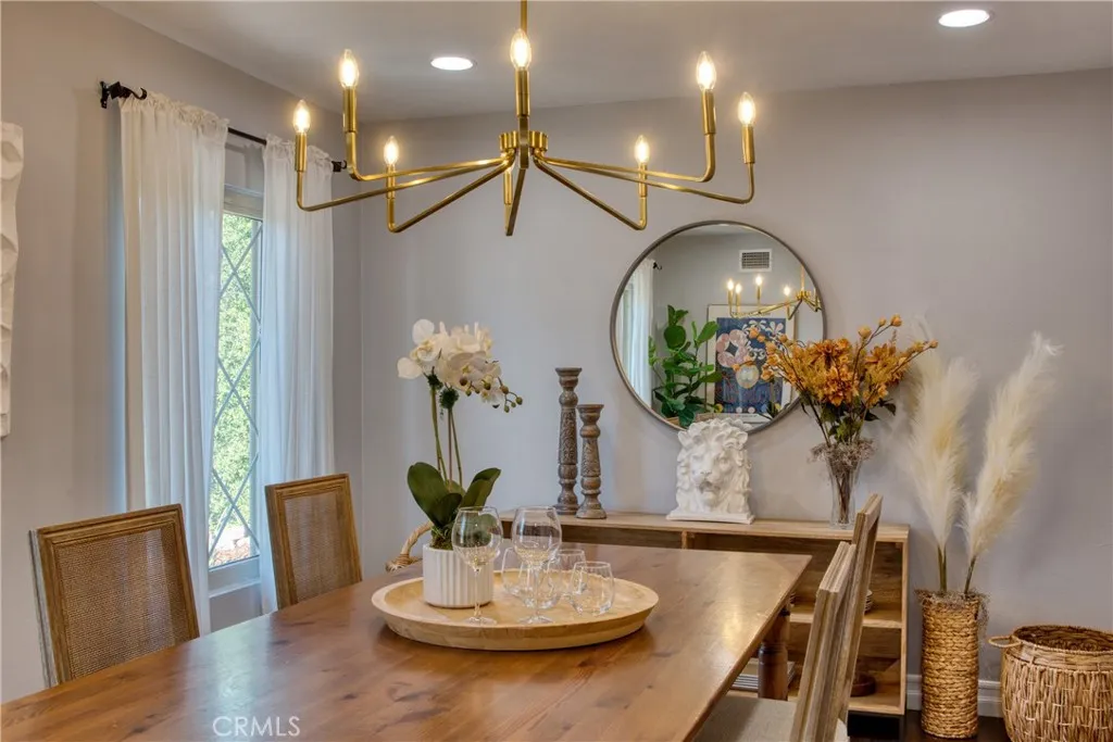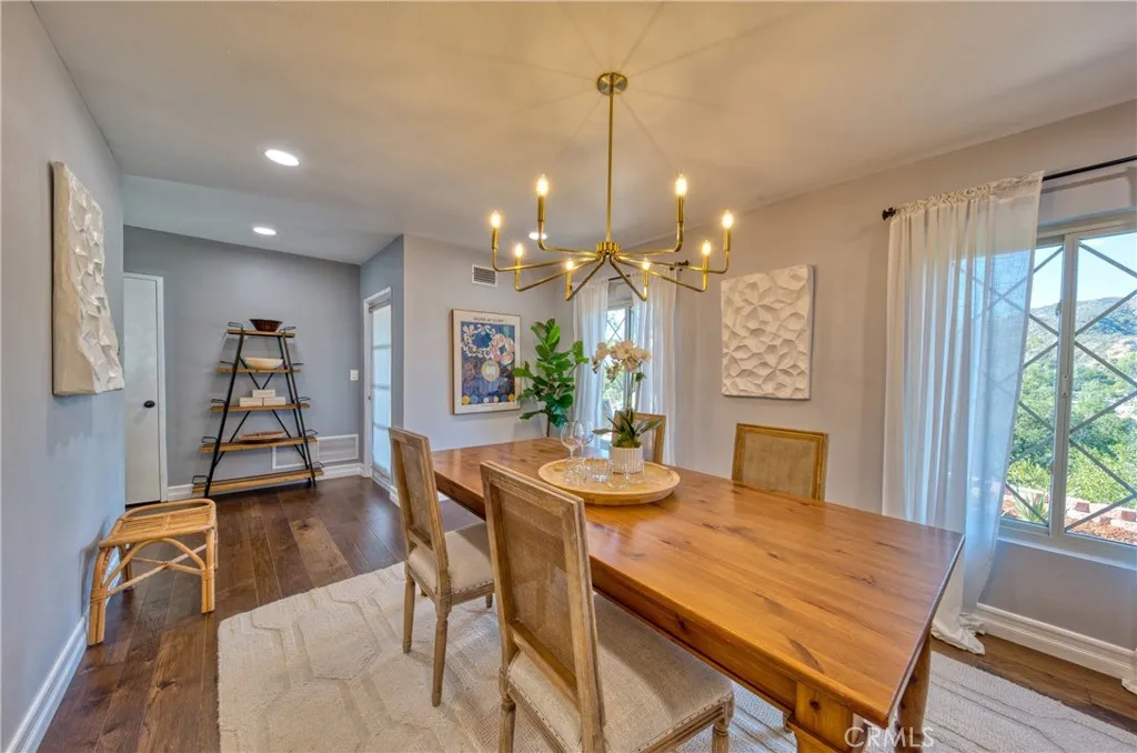 Presenting a single-family residence offering an elevated living experience, perfectly perched in the hills of Glendale. This two-level home is privately sited on a secluded cul-de-sac and affords gorgeous, panoramic views encompassing the golf course and sparkling city lights. The main level boasts a spacious living room highlighted by vaulted ceilings and an inviting fireplace, creating an atmosphere of sophistication and comfort. Adjacent is the formal dining room, featuring direct access to the private backyard, ideal for seamless indoor-outdoor entertaining. The kitchen is appointed with ample cabinetry and a dedicated breakfast area. The upper level is dedicated to the sleeping quarters, headlined by the primary bedroom suite, which includes a walk-in closets and an ensuite bathroom with convenient dual sink vanities. This floor also houses two additional well-sized bedrooms and a shared full bathroom. Further enhancing the property's appeal are essential modern amenities, including central air and heat and an internal laundry room. The home's exterior has been freshly painted. The outdoor space is a true highlight, providing multiple entertainment options on the property, all while enjoying the picturesque vantage point overlooking the golf course. This residence offers a rare combination of privacy, views, and functional living space in a premier Glendale location.