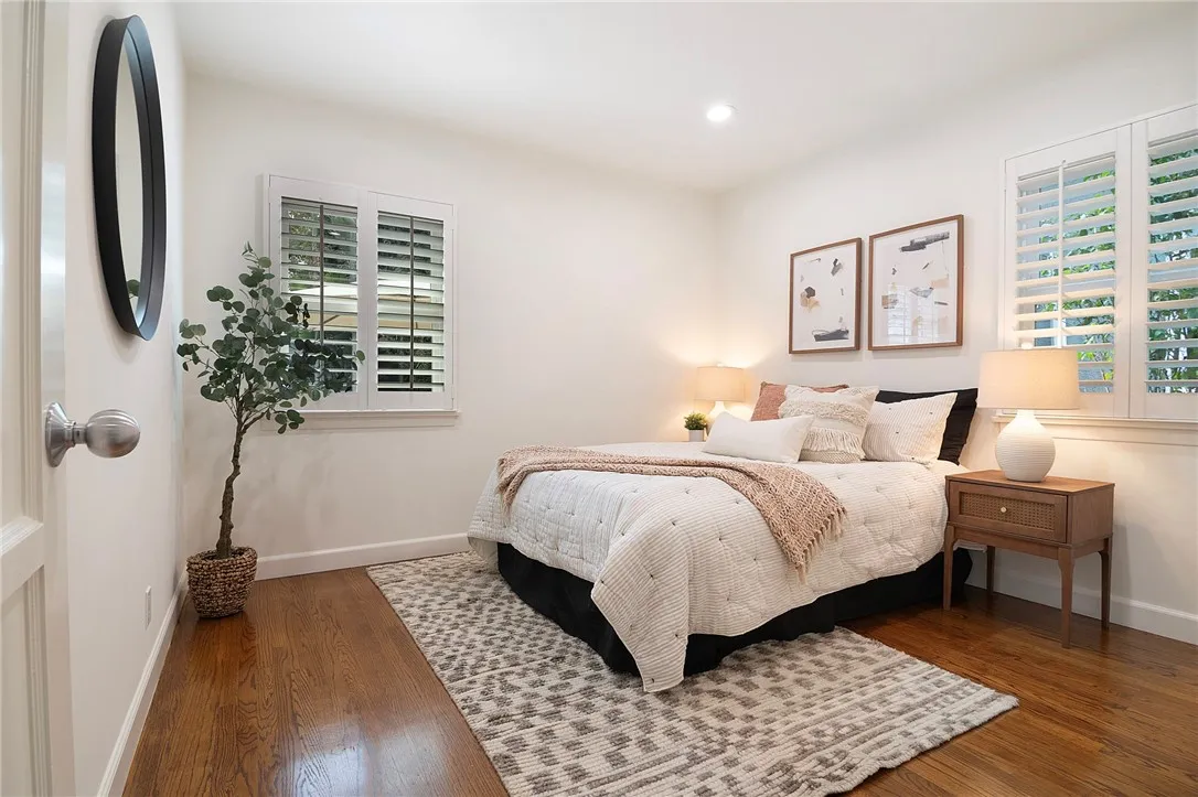 On a pretty tree lined street, this mid century pool home in the Rancho Equestrian District has been completely remodeled and upgraded and is strolling distance to Disney. Gorgeous curb appeal leads you into a modern contemporary home, with an ideal circular floor plan. The living room with large picture window (to watch the parade of horses go by) has a fireplace and opens to the dining room. The newer chefs kitchen features soapstone Quartz counters, glass tiles, and a full suite of appliances including a drawer microwave and wine fridge. Hardwood floors throughout with the bedrooms also having plantation shutters. The well-appointed primary bath with marble counter has a deep soaking tub. The best part of the day: throw open the French doors to your tropical paradise with Hawaiian inspired landscaping and enjoy morning coffee or cocktails by the heated pebble-tec pool. Exceedingly private, the backyard has 8 foot Redwood fencing, a 33 Ficus hedge and a wall of Hollywood Juniper. Newer roof, Milgard windows, and insulated attic. Updated electrical and lighting. 2 car detached garage. Blocks to cafs, coffee houses, shopping, tennis, ice skating, basketball courts and childrens playground, parks and LILA private school. Minutes to DTLA. Close to Griffith Park (quick access over the horse bridge to 50 miles of trails), the Equestrian Center and all the studios: Disney, Warner Bros, Nickelodeon, NBCUniversal. Legendary Burbank schools and services. The perfect neighborhood for living the good life!