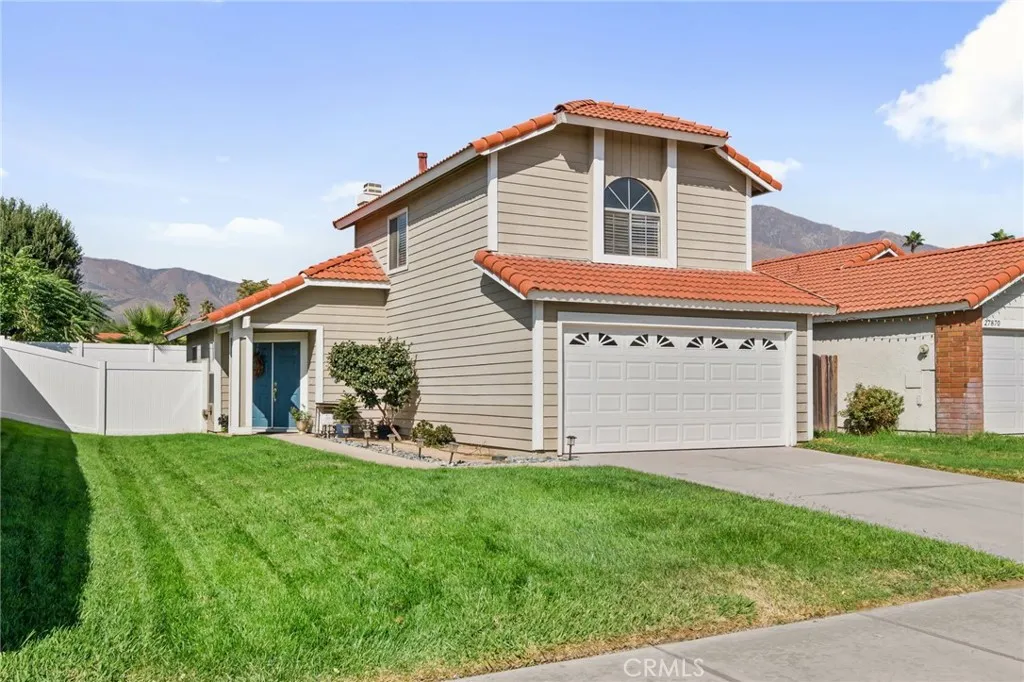 Welcome to this charming two-story home in Highland, perfectly situated on a peaceful street with a lush front yard and an attached 2-car garage with a large driveway. Step inside to soaring ceilings that greet you in the cozy living room, complete with a welcoming fireplace. Adjacent is the bright kitchen, featuring stainless steel appliances, ample cabinet space, and a convenient breakfast bar plus walk in pantry! The dining room offers serene views of the lush backyard, creating the perfect space for family meals or entertaining. A thoughtfully placed half-bath downstairs adds extra convenience. Upstairs, retreat to the expansive master suite, boasting large windows to capture stunning mountain views, generous closet space, and an attached bathroom with dual sinks and its own view-filled window. Two additional bedrooms provide plenty of space for family or guests, each with large closets and bright, inviting windows, along with a well-equipped full bathroom. Step outside to the backyard, where a shaded covered patio awaits for alfresco dining or relaxing away from the SoCal sun. The expansive yard offers a lush lawn, ideal for children to play, pets to roam, or creating your dream outdoor space. With ample parking in the attached garage and large driveway, this home truly has it all. Call us today to schedule a private showing!