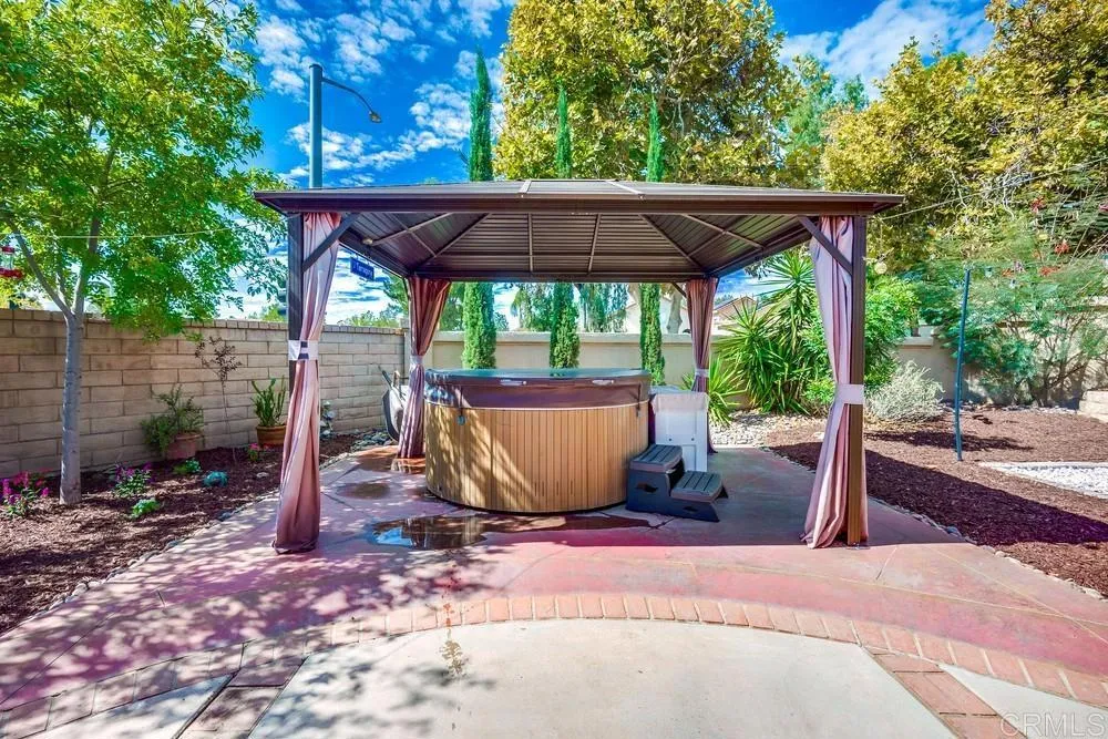 Rare single story home in low tax area! Interest rate Lender buydown at no cost for first year savings! Tucked on a quiet cul-de-sac in one of Murrietas lowest-tax areas, this single-story corner-lot home has been positioned for comfort, efficiency, and easy everyday living. The open layout welcomes you with vaulted ceilings and a cozy fireplace that anchors the living space. Hardwood floors flow seamlessly through the living spaces, adding both charm and practicality. Natural light filters through plantation shutters, creating a warm, inviting atmosphere that adapts beautifully from morning to evening. The remodeled kitchen shines with quartz counters, stainless-steel appliances, custom tile flooring, and an island that makes cooking and gathering effortless. Step outside to discover a peaceful, private backyard framed by mature landscaping and tall block walls. Relax in the spa, enjoy the covered patio, or tend your raised garden boxesyour own little oasis in the heart of Murrieta. Recent upgrades include leased solar for energy savings, R38 attic insulation for improved efficiency, a 2023 roof inspection with all corrections completed, an HVAC tune-up with thermostat rewiring, a Nuvia Signature water softener, smart-lock entry, and perimeter cameras for added peace of mind. With no HOA, low property taxes, and convenient access to the new Murrieta Costco, Super Target, great schools, freeways, and walking trails, this home offers a perfect blend of privacy, practicality, and valueready for its next chapter.