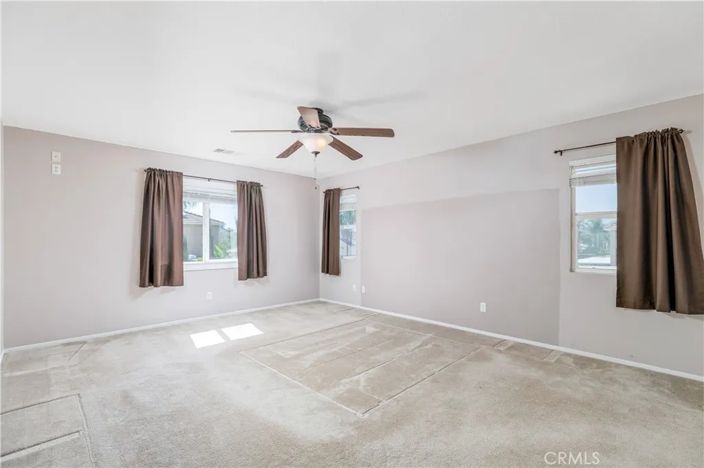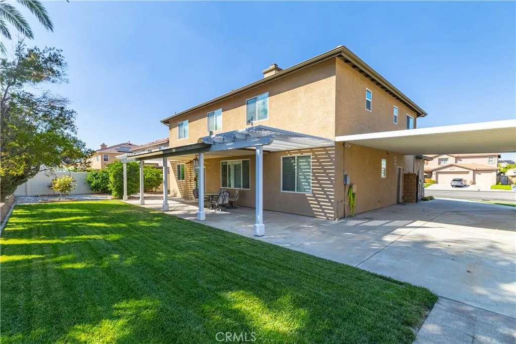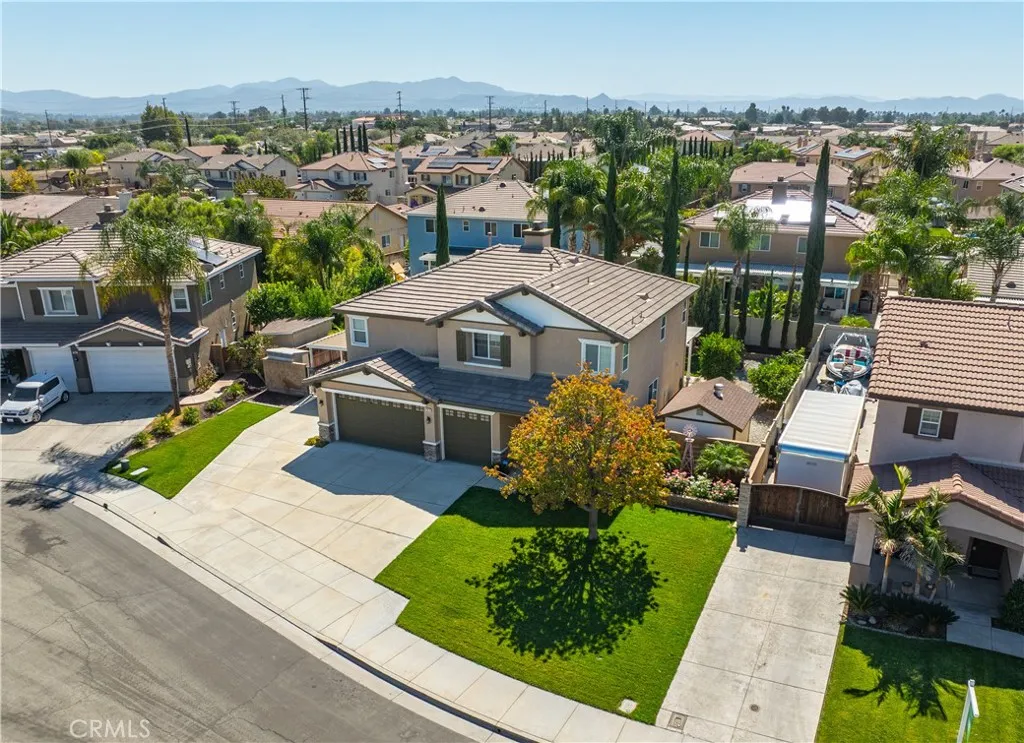 Welcome to 1614 Dragon Fly Circle, a beautifully maintained 4-bedroom, 3-bath home offering 2,662 sq ft of living space on a 0.21-acre corner lot. Built in 2006, this property combines comfort and functionality with a three-car garage and gated RV parking. Inside, youll find an open layout with a spacious living and dining area, a cozy family room with fireplace, and a well-designed kitchen featuring a large center island, abundant cabinetry, and stainless-steel appliances. A versatile downstairs open office offers potential for a study, gym, or work space. Upstairs includes a large loft, laundry room with utility sink, and a generous primary suite complete with dual sinks, soaking tub, separate shower, and walk-in closet. Garage features plenty of storage with custom built cabinets and a utility sink for convenience! Outdoors, the backyard is perfect for entertaining, complete with a full-length covered patio, fruit trees, a storage shed, and low-maintenance landscaping. Located 0.4 miles from Bolander Park, this home provides space, privacy, and convenienceall in one of San Jacintos most desirable neighborhoods.