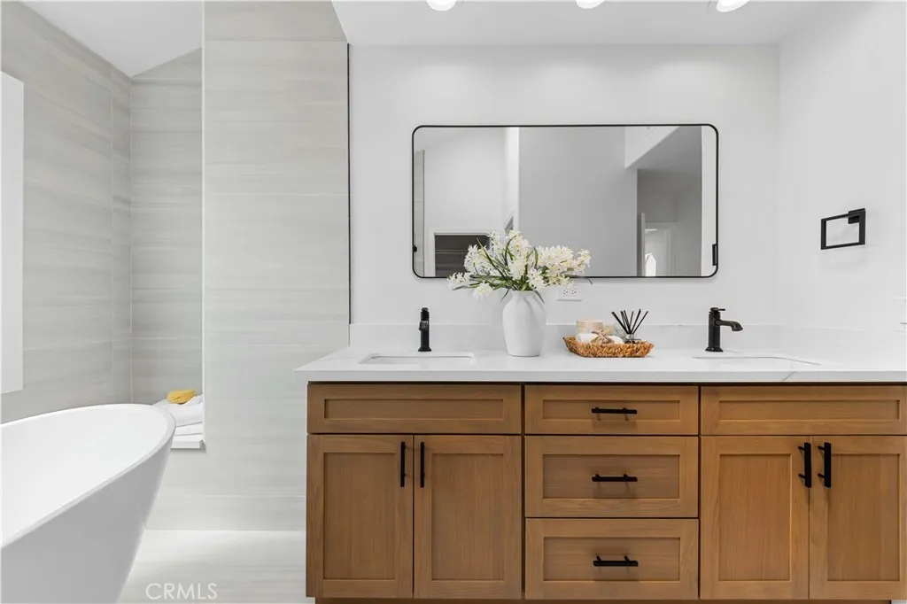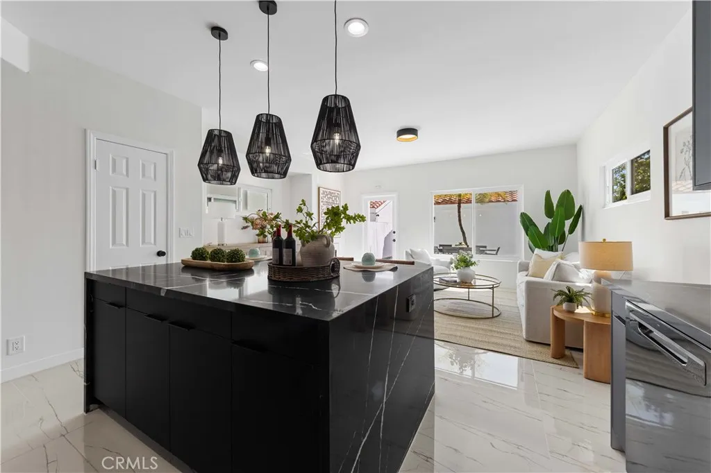 Welcome to this beautifully renovated home, featuring over $250K in upgrades! Blending modern elegance with beachside leisure, this stunning 3-bedroom, 2.5-bathroom home offers a luxurious and relaxed living experience. Step into a sophisticated kitchen, where lavish European black up to the ceiling cabinets and a large island contrast beautifully with premium white tile flooring. Elegant pendant lights with a woven design complement the high ceilings, flooding the space with natural light and enhancing the modern beach-inspired ambiance. The kitchen is equipped with stainless steel appliances and a high-end Fotile rangehood, seamlessly connecting to a spacious backyard with low-maintenance landscapingperfect for outdoor relaxation. The open-concept living room extending to the front yard, showcases a Restoration Hardware chandelier, adding a touch of timeless elegance. Throughout the home, 4mm premium engineered wood flooring harmonizes with fresh Swiss Coffee white paint, creating a warm and inviting atmosphere. A brand-new glass staircase leads to the second floor, where you'll find three spacious bedrooms, including a luxurious master suite. The master bedroom boasts a sophisticated Restoration Hardware aesthetic, complementing the completely renovated en-suite bathroom with rich natural hardwood cabinetry, a standalone soaking tub, and an upgraded modern showera true spa-like retreat. Step out onto your private balcony and soak in the coastal breeze. The two additional bedrooms share a beautifully updated bathroom, ensuring both style and comfort. All 3 bathrooms updat