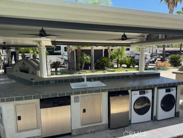 Nestled among the foothills of SoCal Palomar Mountain and a short distance from Temecula Wine Country, Rancho California RV & Golf Resort *Lot 388* provides the opportunity to enjoy the RV Resort Lifestyle at its finest! This developed lot features a beautiful alumawood patio cover providing an outdoor kitchen, as well as a Washer & Dryer, expansive bar seating area and sunken living/fireplace sitting area with shade screens to enclose the space. Outdoor BBQ station is at the front of the lot with additional conversation sitting area. The lot is surrounded by raised planting beds and beautiful palm trees. The size of the lot accommodates large rigs while offering plenty of vehicle and golf cart parking. Beautiful VIEWS of the green space, mountains, golf course and water! Rancho California RV Resort provides amenities such as a 14 hole Executive PAR 3 Golf Course (no fees for owners), 5 Pools/Jacuzzis, Tennis courts, Pickleball courts, Dog park, Club house, hiking trails, Horseshoe lawn and onsite grocery market. The resort is guard gated with no age restrictions. Monthly HOA fee includes use of the golf course, amenities, trash pickup at lot, water/sewer and common area maintenance. If you are considering a premier Southern California RV Resort destination, don't miss out on visiting Rancho California RV Resort. *FINANCING IS AVAILABLE*